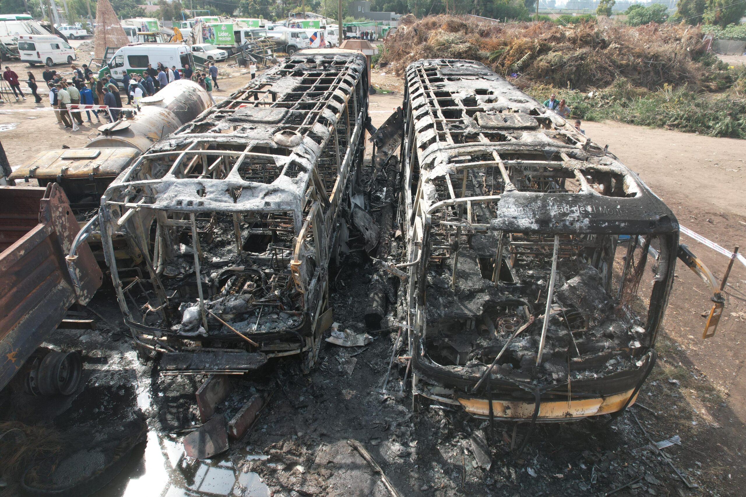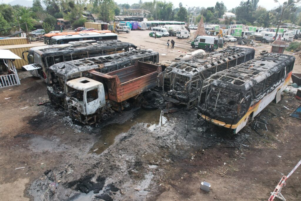 Santiago, 10 de abril de 2025.– Durante la madrugada de este jueves, un incendio intencional destruyó siete vehículos municipales en la comuna de El Monte, incluyendo cinco buses escolares, un camión tolva y un camión limpiafosas. El hecho generó preocupación por su posible vínculo con la reciente demolición de mausoleos asociados al narcotráfico en distintos puntos de la comuna.