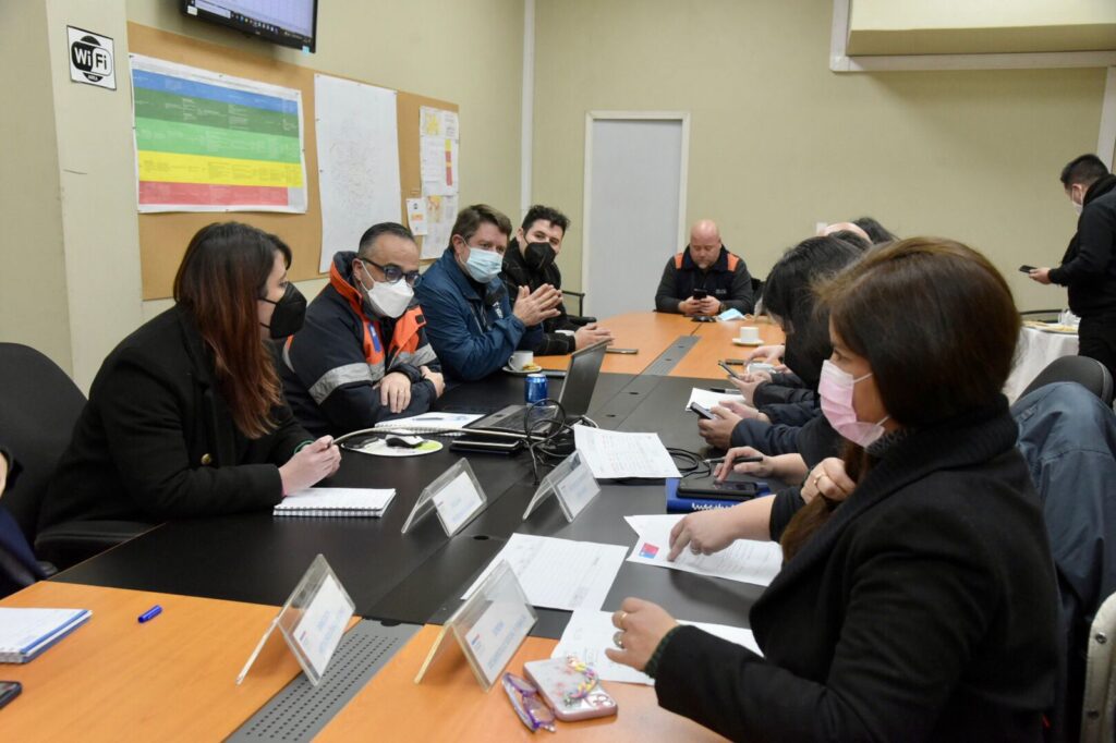 Santiago, 14 de julio 2022.- Desde la oficina regional de Onemi, el gobernador metropolitano, Claudio Orrego; la delegada presidencial, Constanza Martínez; el director de Onemi RM, Miguel Muñoz, y el jefe de unidad de SEC, Fernando Fredes, entregaron un positivo balance por el sistema frontal que se registra en la capital.