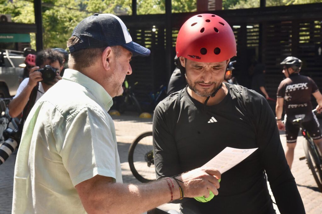 En el ingreso a Parquemet, las autoridades repartieron folletos, a ciclistas y peatones, con información y sugerencias para enfrentar el calor extremo que afecta a la capital.