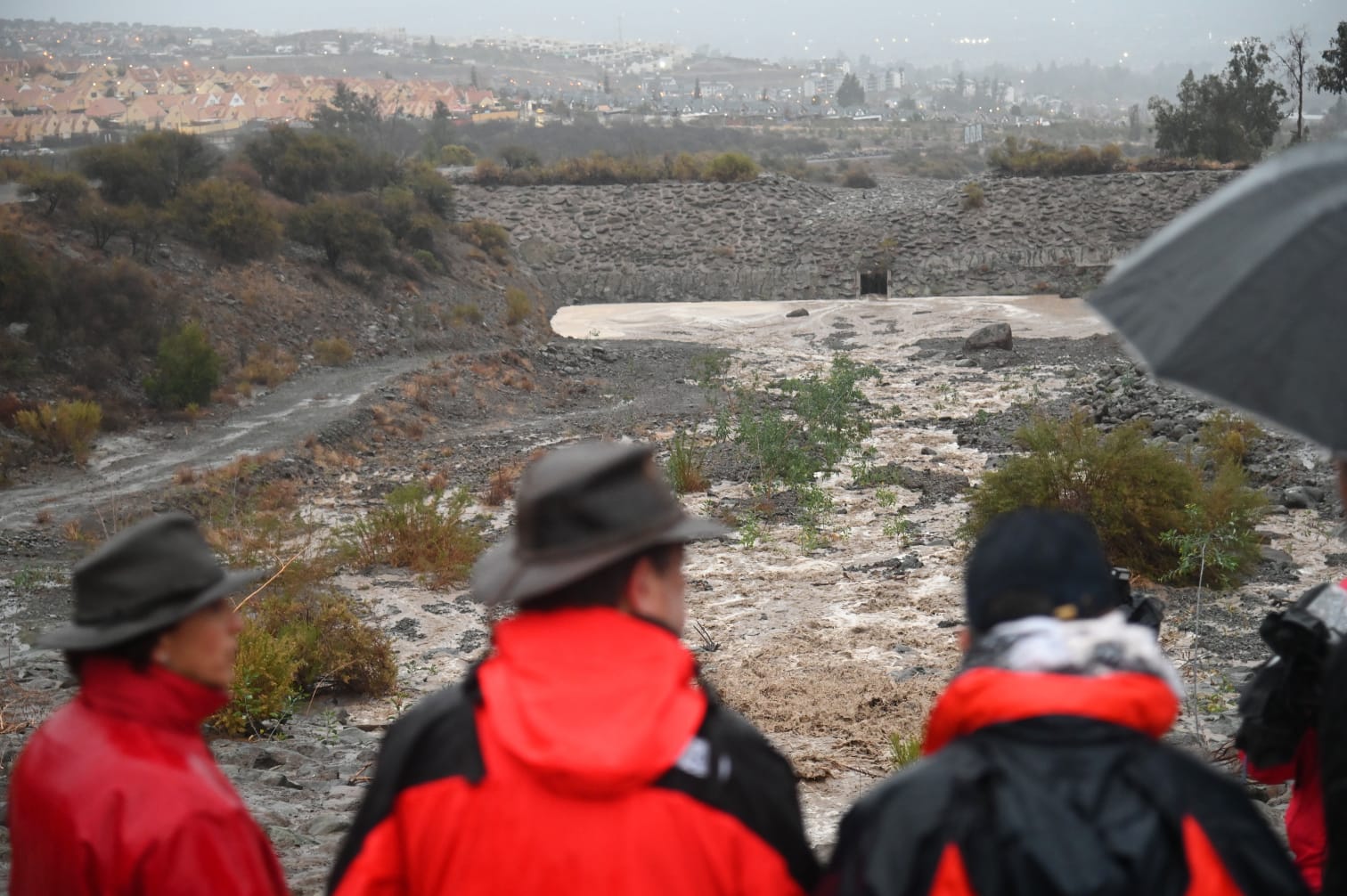 El gobernador de Santiago, Claudio Orrego, indicó que en el actual sistema frontal “se estima que caigan cerca de 100 mm de precipitaciones en dos días y medio o tres días, lo que significa casi todo lo que llovió el año pasado. Los estanques de Aguas Andinas tienen capacidad de 1,5 millones de metros cúbicos y da una autonomía de 36 horas a la ciudad de Santiago, pero siempre tenemos que estar alerta por eventuales derrumbes y lluvia alta en la cordillera”.