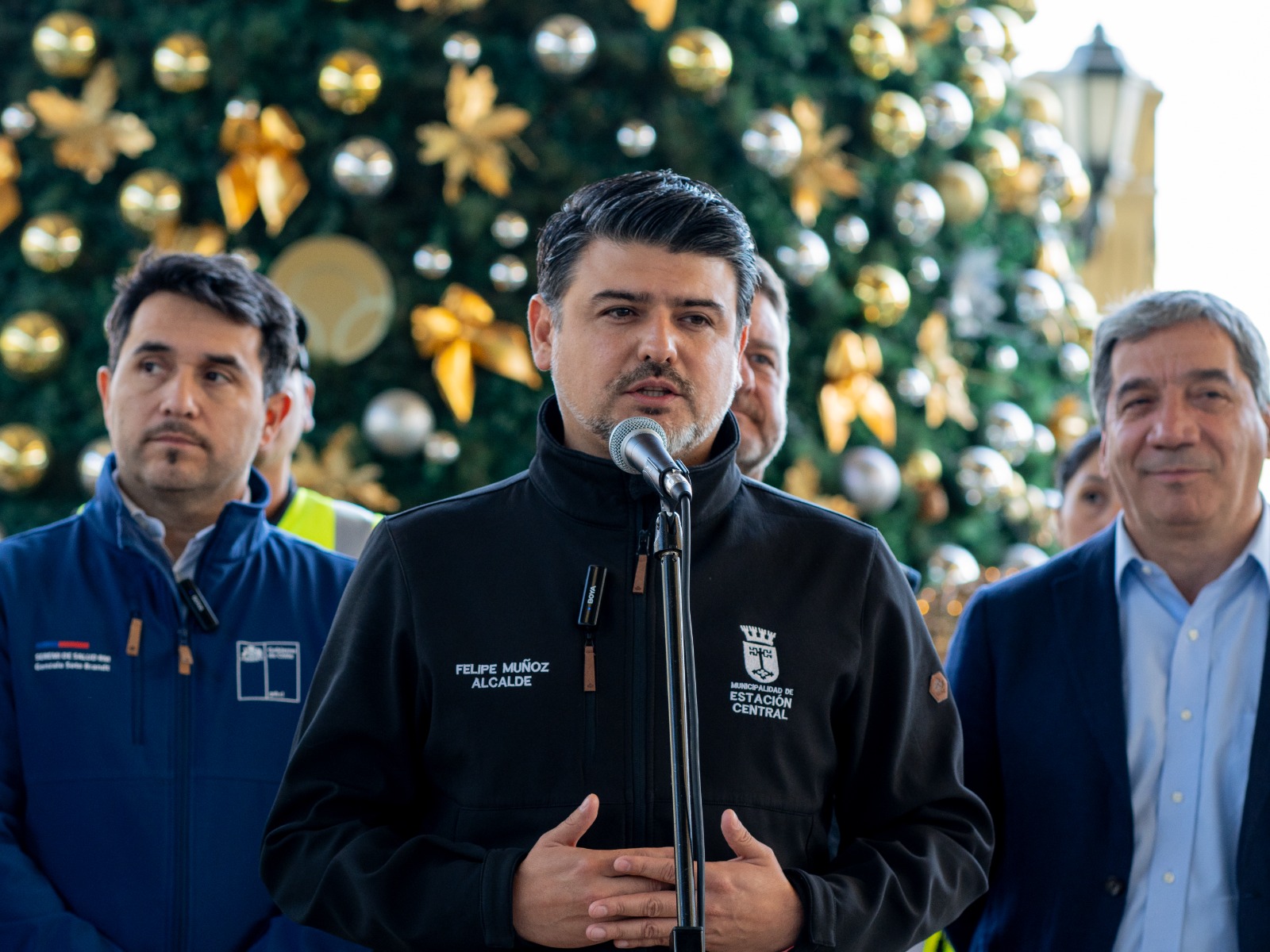 Martes 03 de diciembre.- En el marco de las fiestas de fin de año, el Gobernador de Santiago, Claudio Orrego, junto al el alcalde de Estación Central, Felipe Muñoz; el delegado presidencial, Gonzalo Durán; el seremi de Salud, Gonzalo Soto, hicieron el lanzamiento oficial del Plan Navidad Segura para el barrio comercial de la comuna.