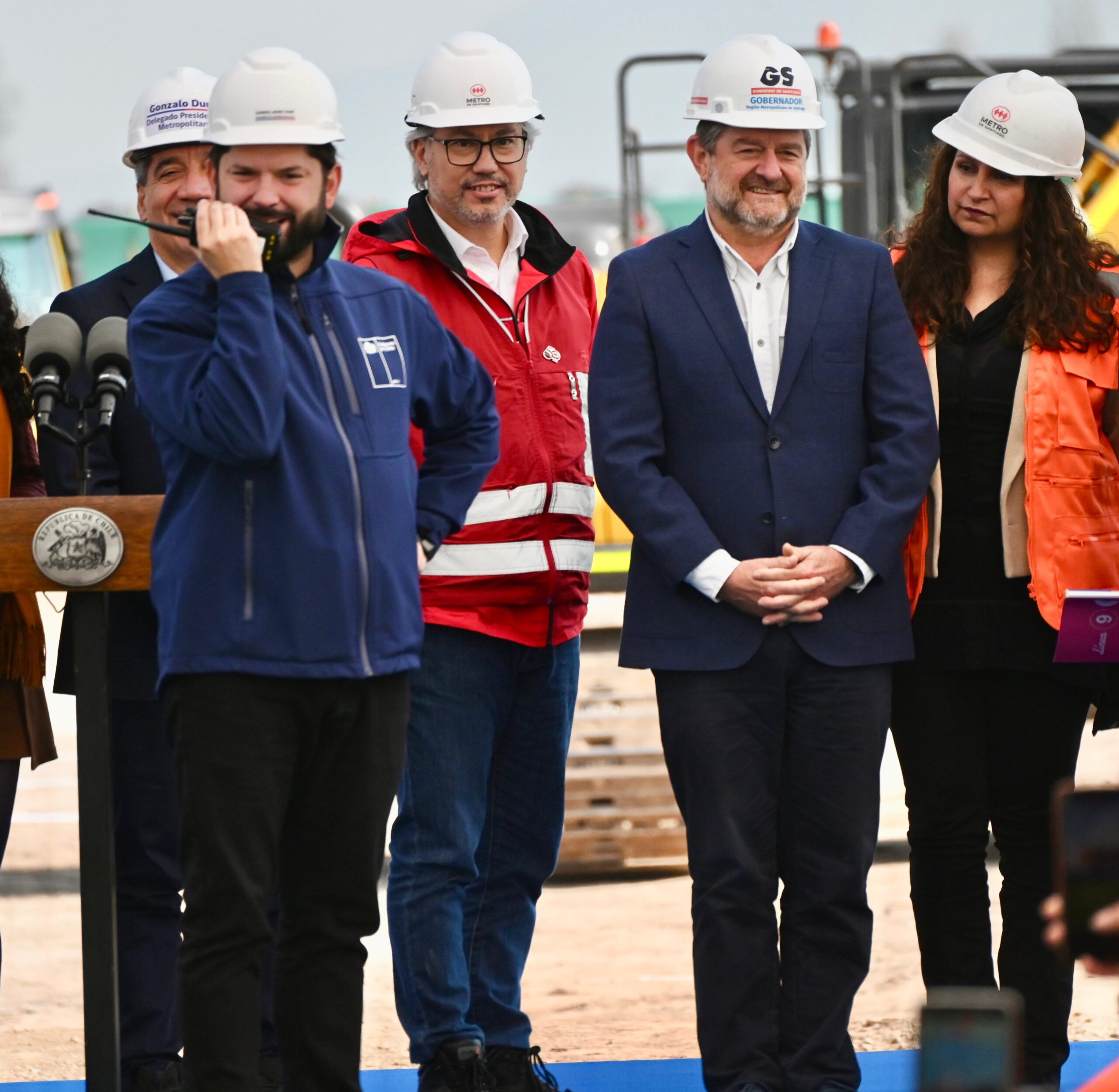 Santiago, agosto 2025.- El Presidente Gabriel Boric, junto al directorio y gerente general de Metro; el ministro de Transporte, Juan Carlos Muñoz; el gobernador de Santiago, Claudio Orrego; el delegado presidencial, Gonzalo Durán; y alcaldes dieron inicio a las obras del del nuevo trazado de Metro de Santiago, que conectará el centro de Santiago con el de Puente Alto, pasando por La Legua, La Pintana y Bajos de Mena.
