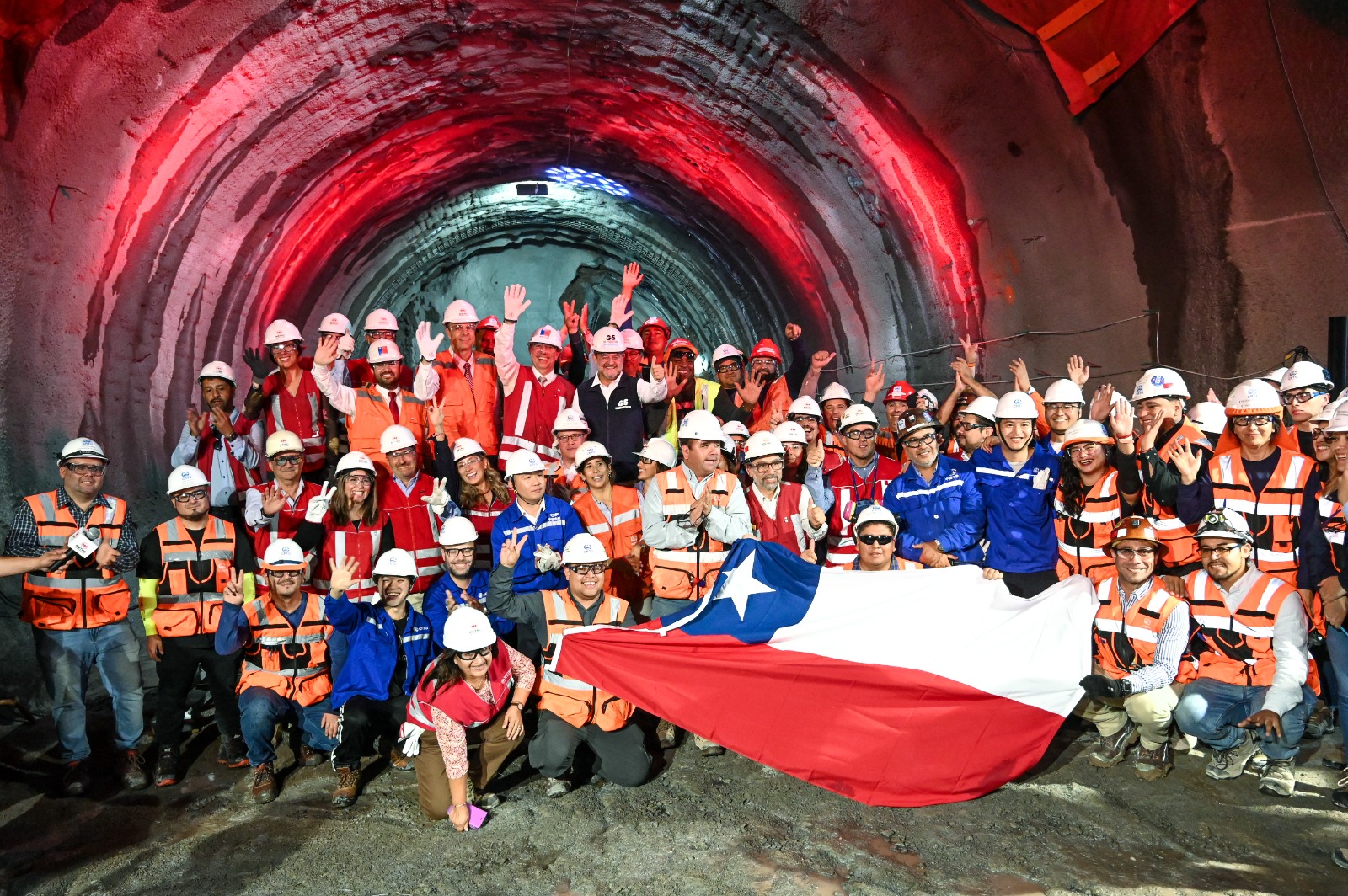 Santiago, marzo de 2026- En el marco del avance de la futura Línea 7, el ministro de Transportes y Telecomunicaciones, Louis de Grange; el gobernador de Santiago, Claudio Orrego; el delegado presidencial metropolitano, Germán Codina; junto al presidente de Metro, Guillermo Muñoz, y el gerente general de la empresa, Felipe Bravo, participaron del hito constructivo del encuentro de túneles en la estación Cal y Canto.