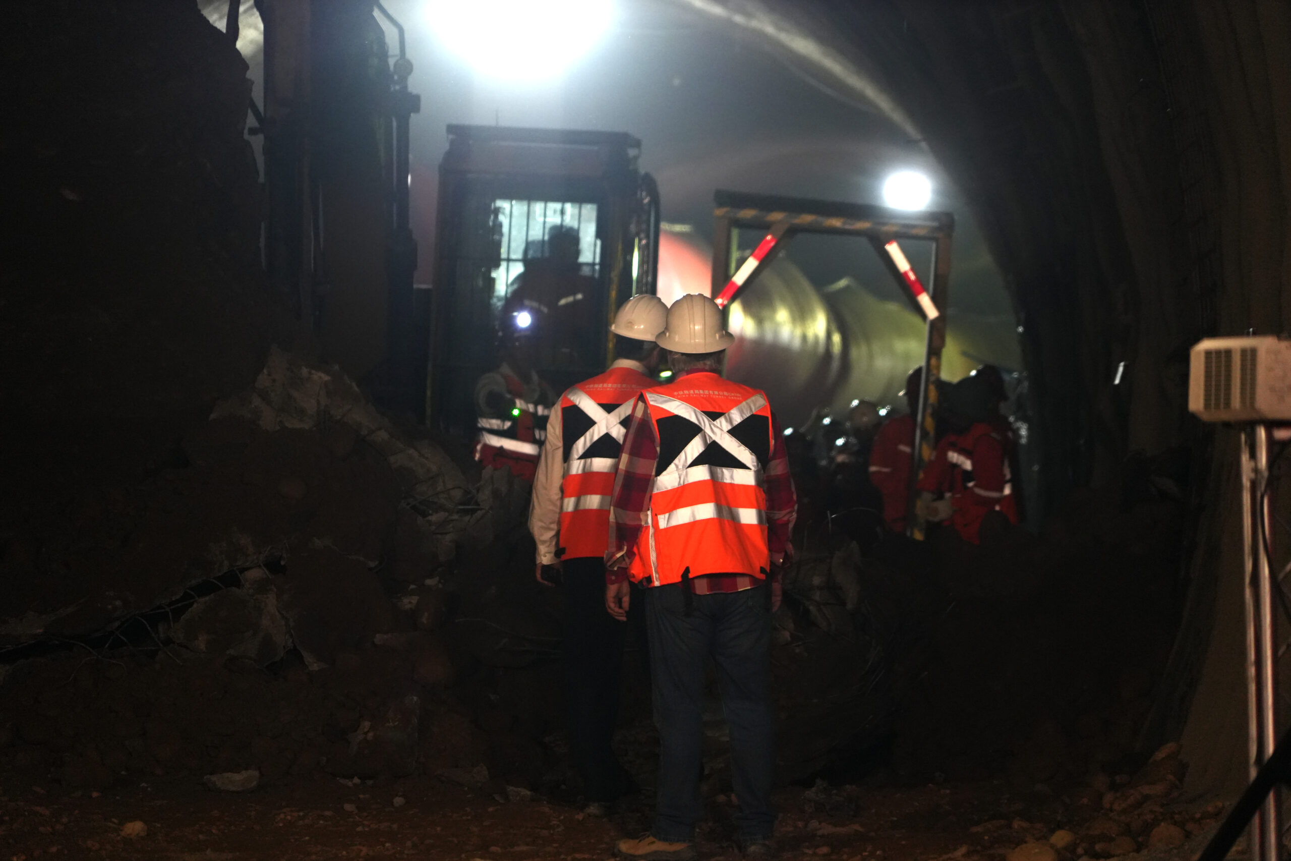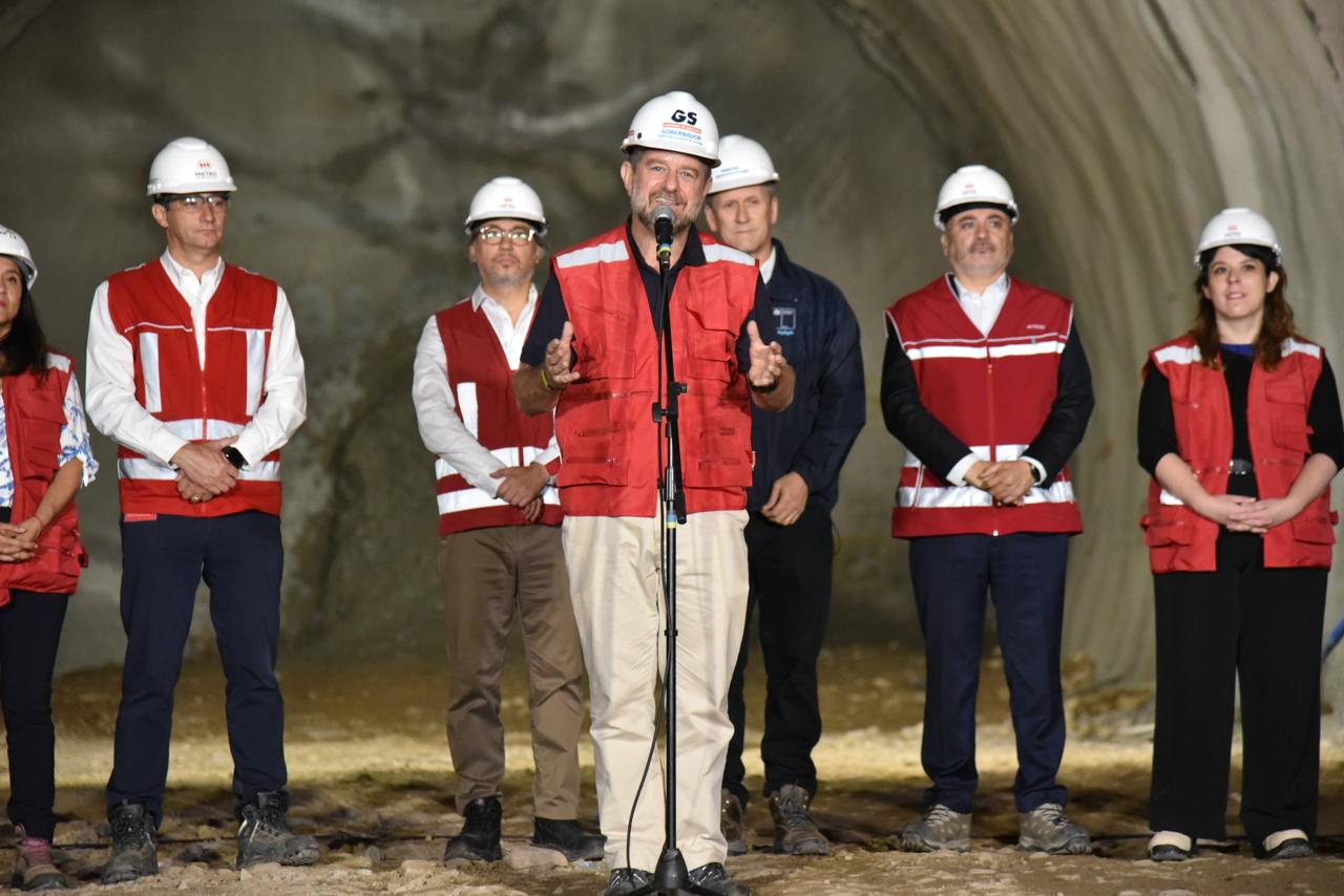 Santiago, 05 de marzo 2024.  El gobernador de Santiago, Claudio Orrego, junto al  ministro de Transportes y Telecomunicaciones, Juan Carlos Muñoz, el presidente del directorio de Metro, Guillermo Muñoz y la delegada Presidencial, Constanza Martínez, participaron del primer encuentro de túneles de la futura Línea 7 del tren subterráneo.