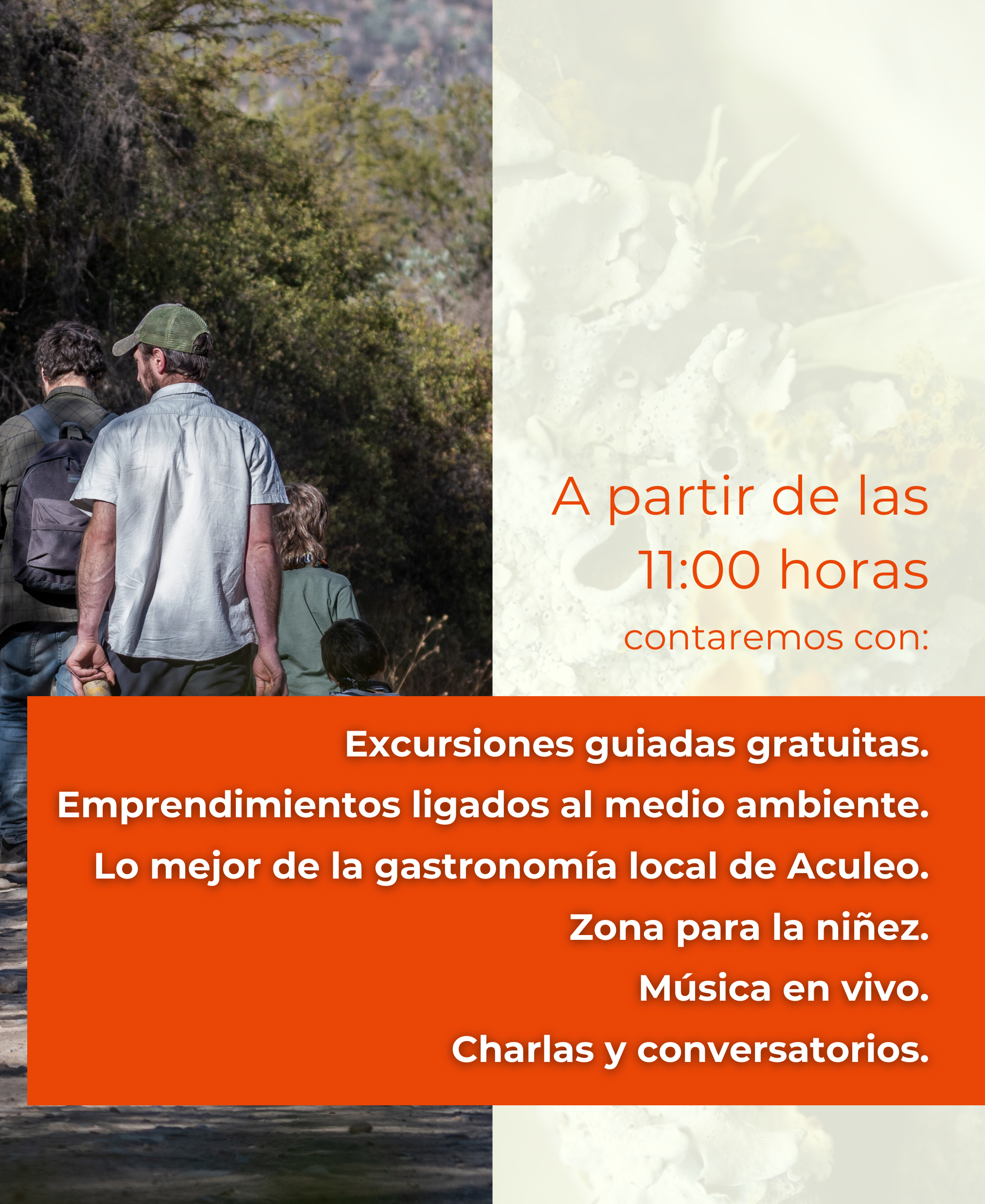El panorama familiar contará también con emprendimientos de comida local del Valle de Aculeo, y durante el día se presentarán distintos artistas, entre ellos la banda infantil Espantapájaros y el cantante Juanito Ayala, ex-líder de la banda Juana Fe que cerrará la jornada.