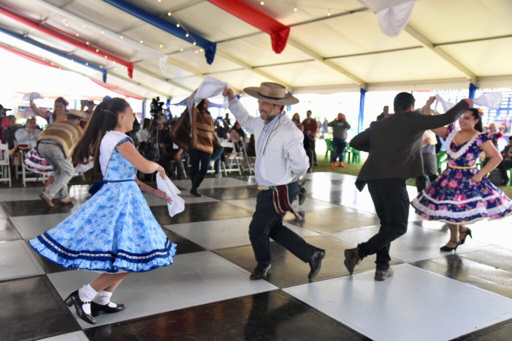 Santiago, 16 de septiembre de 2022.- Con la presencia del Gobernador de la Región Metropolitana, Claudio Orrego, la embajadora de Estados Unidos, Bernardette Meehan, y el alcalde José Manuel Palacios, se bailaron los primeros pies de cueca en la Aldea del Encuentro, dando inicio oficial a la fonda “Encontrémonos en La Reina”, el evento de celebración de Fiestas Patrias en la comuna de La Reina.