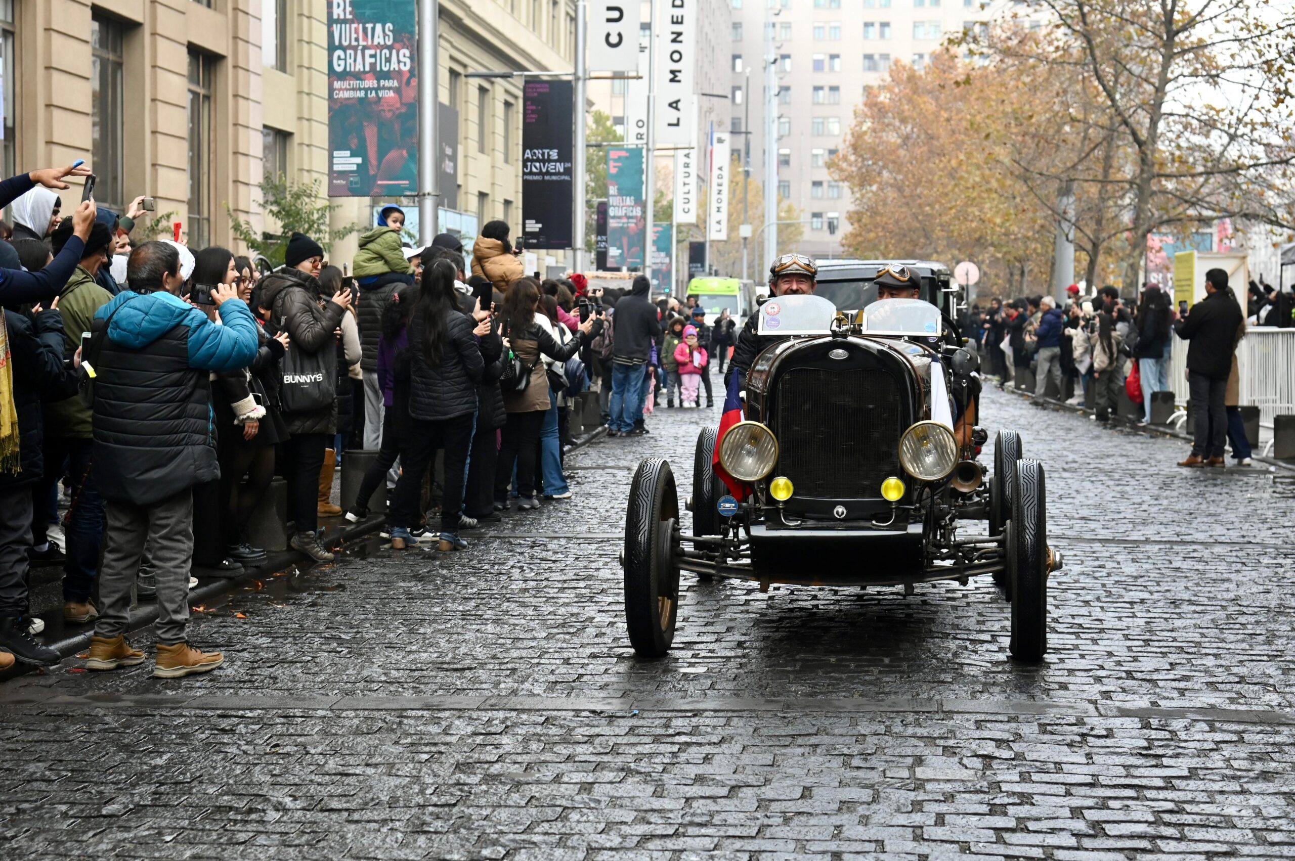 Los vehículos recorrieron los principales puntos de interés del eje Alameda, tales como la Iglesia San Francisco y la Estación Central, ambos beneficiados por el componente de recuperación de fachadas y espacios públicos del proyecto Nueva Alameda.