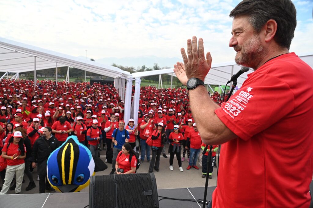 El gobernador Claudio Orrego anunció la creación de 24 kilómetros de ciclovías en el Eje Alameda al público que asistió para batir un Récord Guinness mundial.
