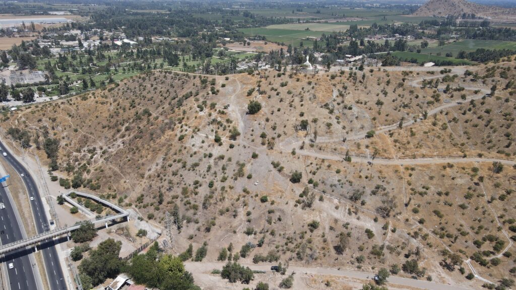 Santiago, abril 2024.- De los 62 cerros islas existentes en la Región Metropolitana, 26 están inmersos en la trama urbana. Uno de ellos es el cerro Chena, en la comuna de San Bernardo, que aspira a convertirse en un pulmón verde de la zona sur, a pesar de haber sufrido las consecuencias de la sequía de más de una década. Entre los planes para rehabilitarlo se cuenta el proyecto que lleva a cabo la construcción de Obras de Conservación de Agua y Suelo (OCAS), impulsado por el Gobierno de Santiago, con la asesoría experta de Escenarios Hídricos 2030 de Fundación Chile.