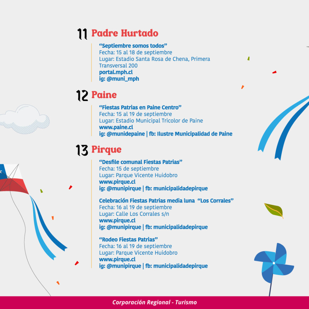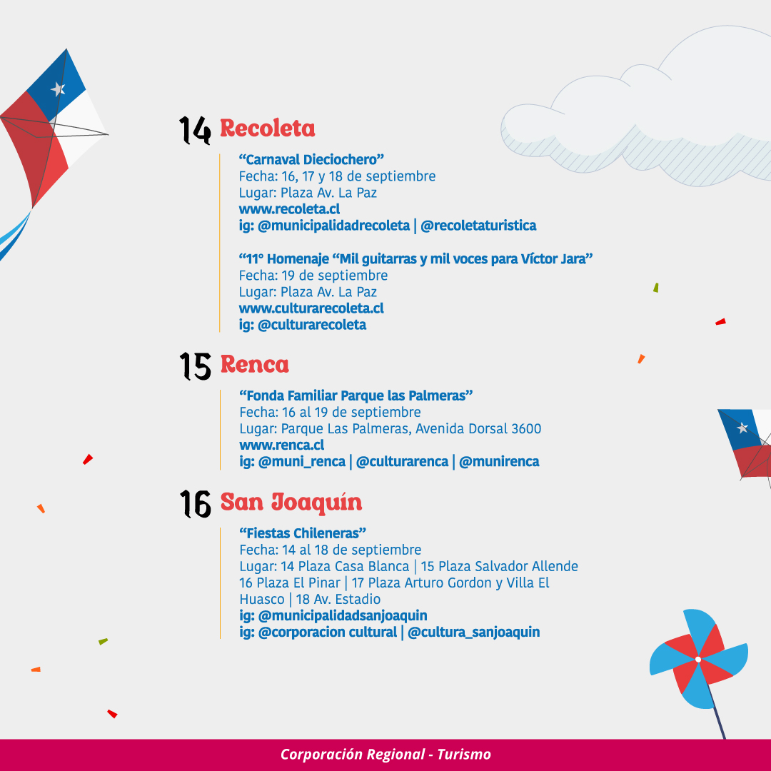 Además, no te pierdas la oportunidad de disfrutar de la deliciosa gastronomía chilena, con empanadas, anticuchos y chicha en cacho. ¡Celebremos juntos con alegría y tradición!