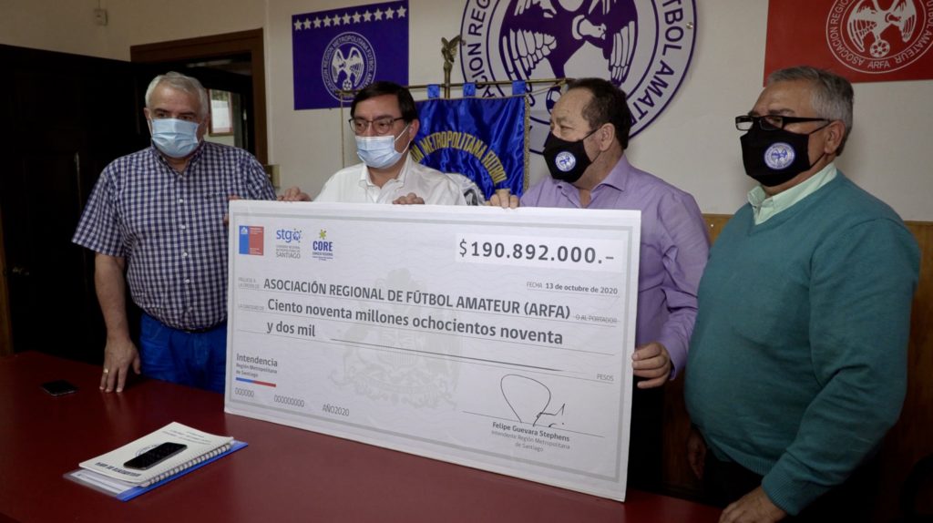Santiago, 13 de octubre de 2020.- El Intendente de la Región Metropolitana, Felipe Guevara, hizo entrega esta mañana al director de la Asociación Regional de Futbol Amateur (ARFA), Luis Oliva, de los equipos y los equipamiento que el Gobierno Regional de la RM financió para el centro médico de la Asociación, ubicado en Avenida España #55.