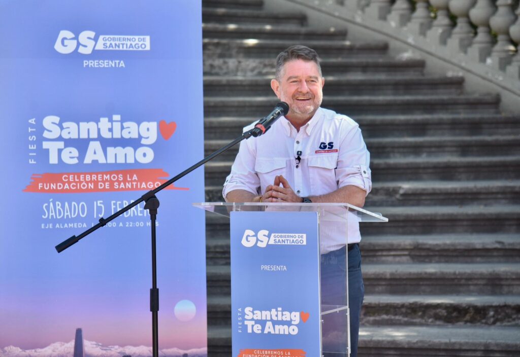 “Los cumpleaños hay que celebrarlos y nos aproximamos a los 500 años de la fundación de Santiago, y para honrar esta historia esperamos que se transforme en una fiesta permanente para nuestra región. En esta primera versión de la Fiesta Santiago Te Amo, queremos demostrar que recuperar la ciudad para las personas no es solo recuperar fachadas, sino que también devolverle el alma y la identidad. Para nosotros elegir la nueva Alameda como escenario principal de esta fiesta Santiago, Te Amo, es poner en valor lo que hemos estado haciendo los últimos 3 años y medio. Estamos recuperando fachadas, devolviéndole la vida a los 11 barrios de este sector. Queremos que la Alameda sea el ejemplo de lo que queremos para toda la Región Metropolitana”, señaló Claudio Orrego, Gobernador de Santiago.