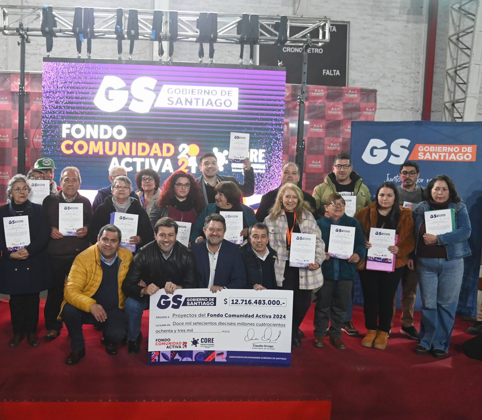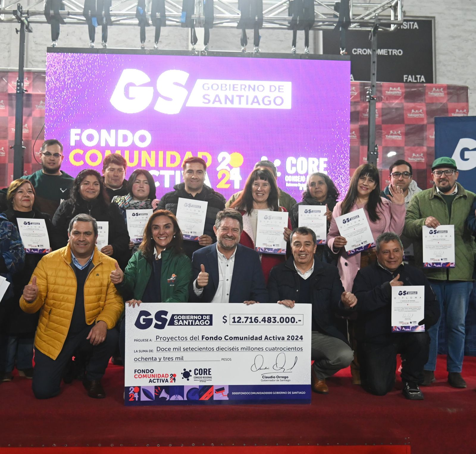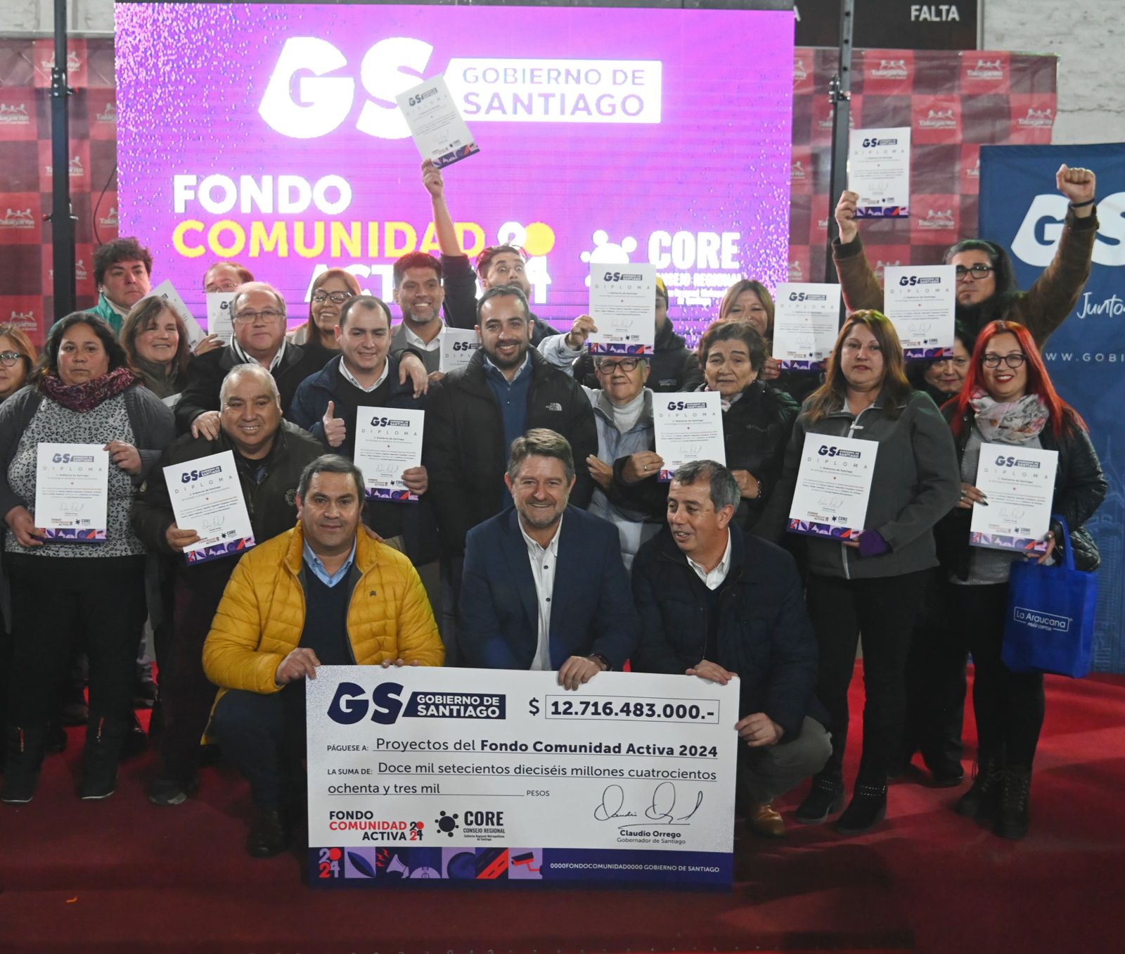 Santiago, miércoles 07 de agosto de 2024.- Durante la noche de este miércoles se llevó a cabo la firma de convenios y la entrega de diplomas a las 261 organizaciones beneficiadas con el Fondo Comunidad Activa, en la provincia de Talagante.