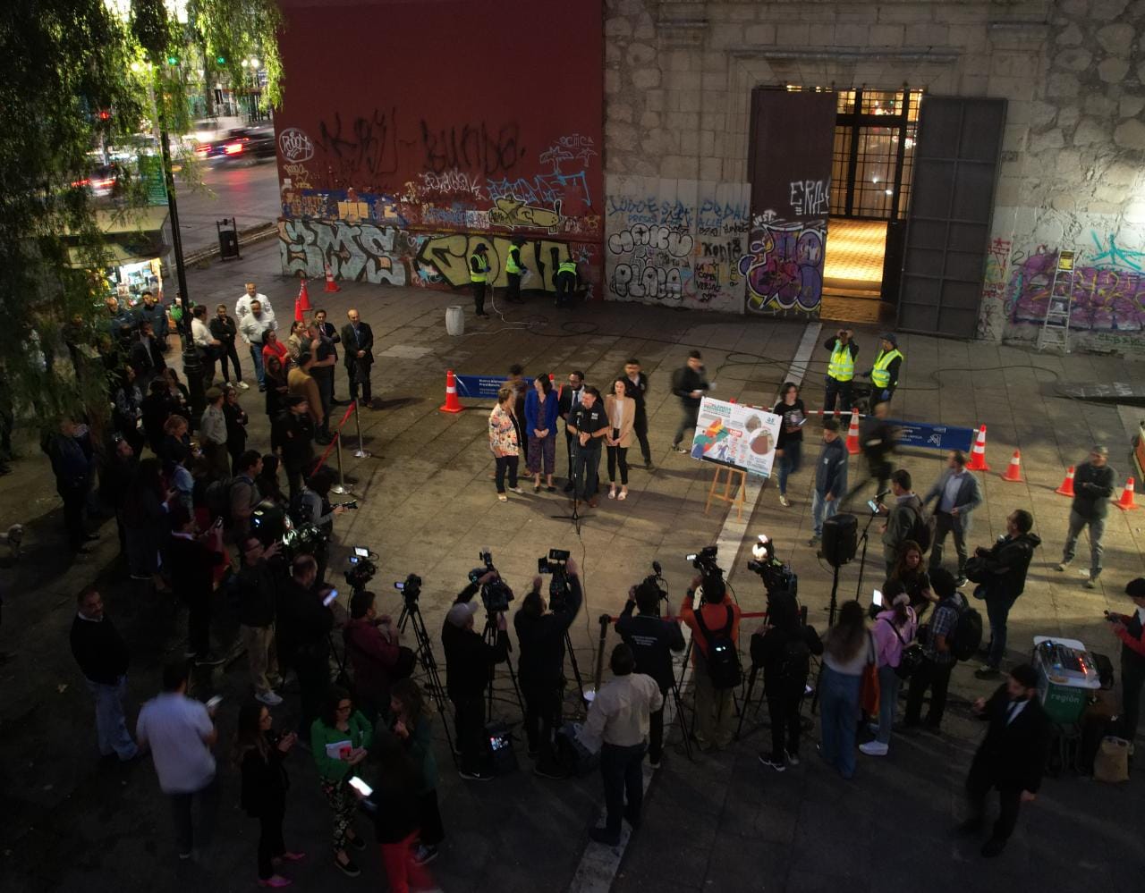 Lunes 27 de marzo de 2023, Santiago. – Después de 9 años de empujar el proyecto, el Gobernador Metropolitano, Claudio Orrego, dio inicio a la renovación del eje Alameda Providencia con el comienzo de la recuperación y limpieza de 8 kilómetros de fachadas del eje.
