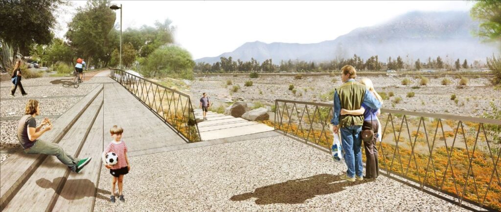 Este corredor permitirá conectar todos los parques y espacios verdes existentes en el borde del río Mapocho, relacionándolos con otros parques o cerros cercanos, en una continuidad ambiental y ecológica, consolidando una matriz geográfica y ecológica para Santiago, como principal componente de su desarrollo urbano, que permita conectar todos los estratos sociales y topográficos a lo largo de once comunas: Lo Barnechea, Vitacura, Las Condes, Providencia, Santiago, Quinta Normal, Cerro Navia, Pudahuel, Recoleta, Independencia y Renca.