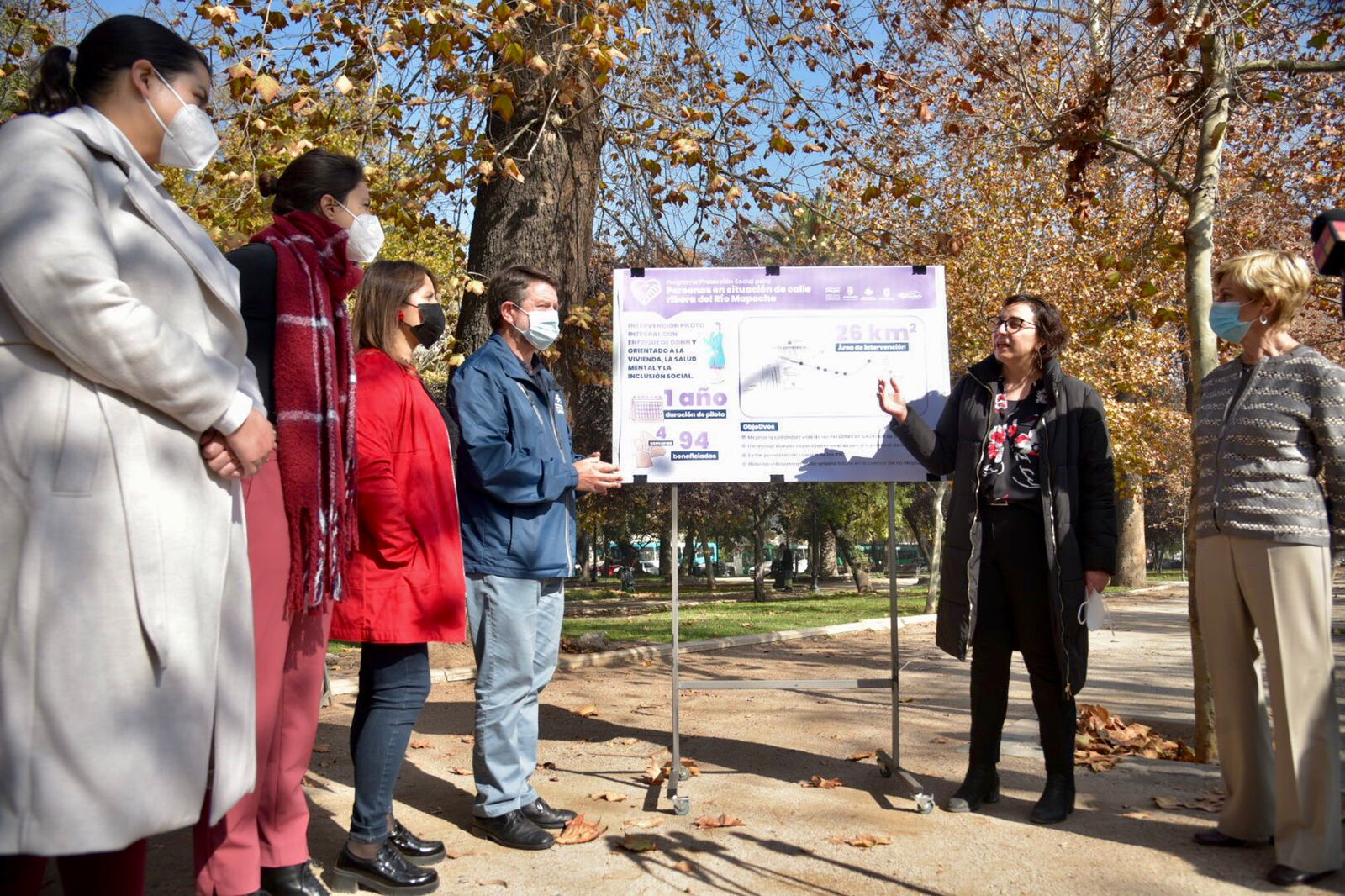 La autoridad metropolitana presentó el “Programa de Protección Social para Personas en Situación de Calle”, una iniciativa para implementar en el eje del río Mapocho -entre las Torres de Tajamar y el Centro Cultural Estación Mapocho- y en sectores aledaños a la ribera como calles, plazas y parques. Se trata de una intervención piloto integral con enfoque de DDHH y orientado a la vivienda, la salud mental y la inclusión social, abarcando cerca de 26 km2 y beneficiando a casi 100 personas en situación de calle.