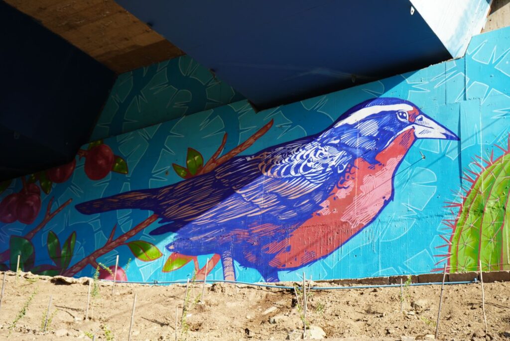 En la ocasión, también se inauguró un mural junto al acceso, liderado por el artista FAYA, como parte del proyecto Confluencia, financiado por el Gobierno de Santiago y ejecutado por las fundaciones Metro 21 y Muro Ciego. En su realización, el mural contó además con la participación de vecinos de Vitacura, especialmente personas mayores.