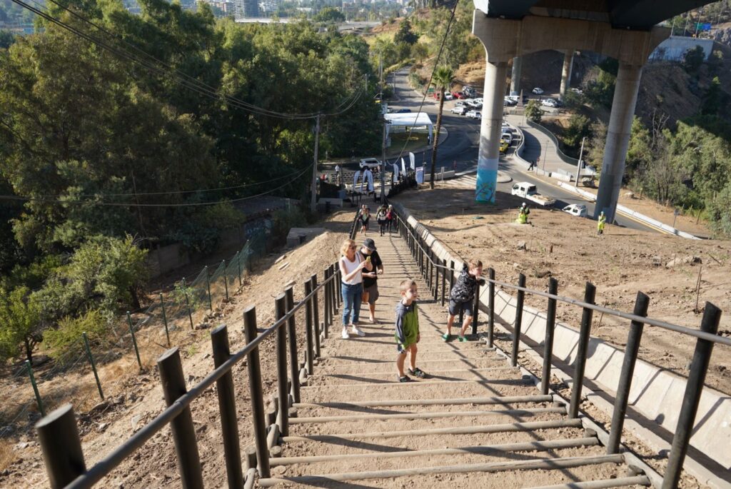El proyecto, financiado íntegramente con fondos de la Municipalidad de Vitacura, incorpora una escalera de 525 peldaños, con pasamanos, miradores, asientos y descansos.