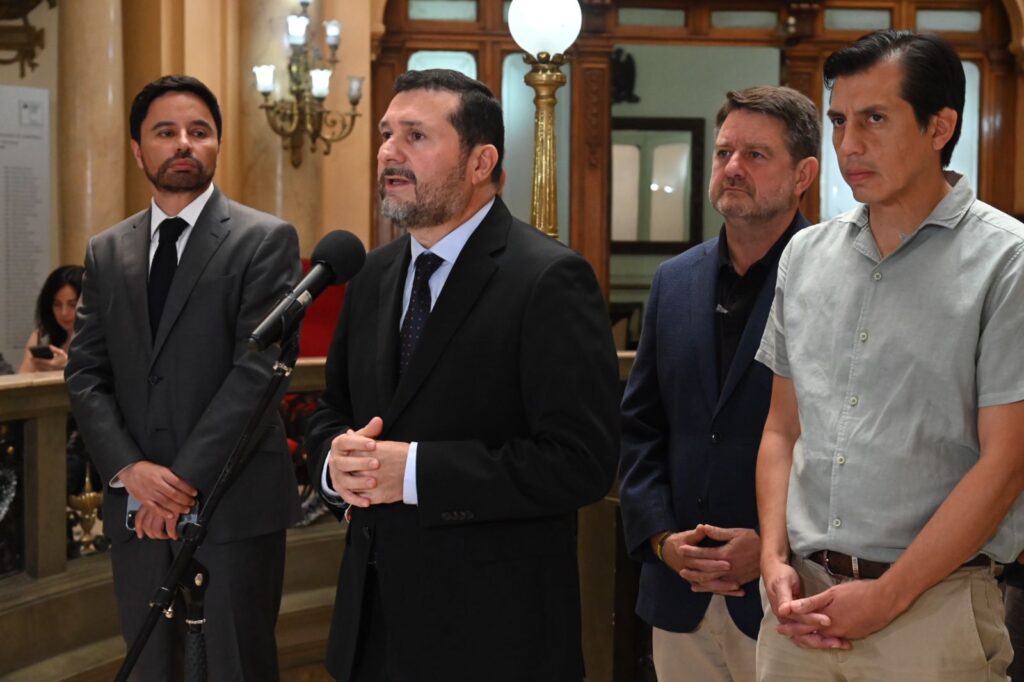 Santiago, 04 de enero del 2024.- En el contexto de la crisis de seguridad que atraviesa el país, el gobernador de Santiago, Claudio Orrego, lideró una reunión junto al Fiscal de la Zona Metropolitana Sur, Héctor Barros, y los alcaldes de Pedro Aguirre Cerda, Luis Astudillo; La Florida, Rodolfo Carter y San Bernardo, Christopher White; se reunieron para levantar las necesidades del Equipo de Crimen Organizado y Homicidios (ECOH), que está operando hace poco más de un mes en la región.