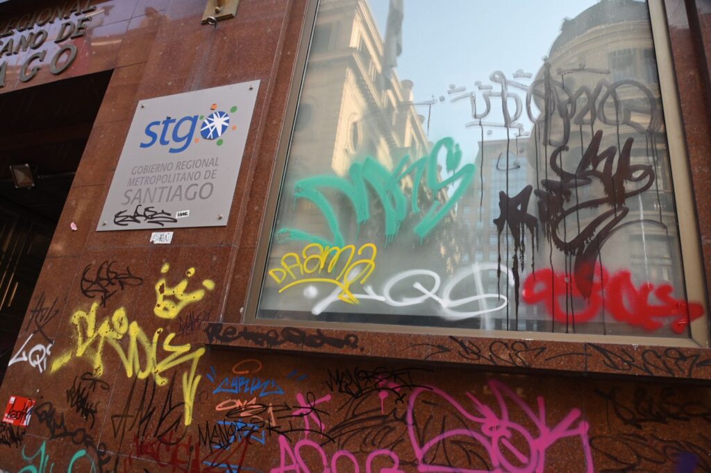 Santiago, 04 de julio de 2023.- El Gobernador de Santiago, Claudio Orrego, denunció un ataque de “bombing” por parte de grafiteros al edificio del Gobierno Regional, ubicado en Bandera, en el centro de la ciudad. Este acto de vandalismo consiste en la aplicación de pintura en aerosol o grafiti de gran escala en fachadas y otras superficies, con el objetivo de generar una acción intimidatoria.