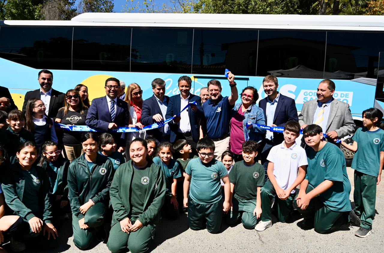 Santiago, marzo 2026.- El gobernador de Santiago, Claudio Orrego, entregó 10 nuevos buses para la Provincia de Melipilla, seis de ellos para la comuna de María Pinto, y cuatro para Curacaví. La inversión cercana a los 3 mil millones de pesos irá en directo beneficio para estudiantes de ambas comunas, permitiendo una mejor conectividad.
