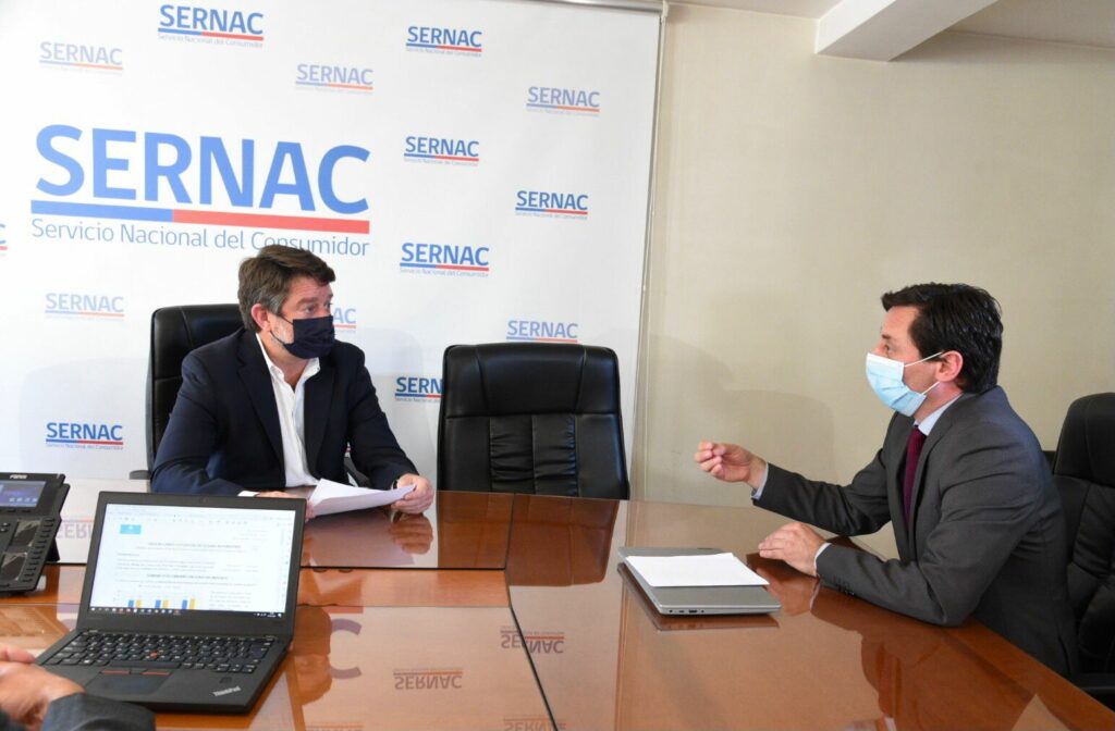 Santiago, 30 de septiembre de 2021.- El Gobernador de la Región Metropolitana, Claudio Orrego, se reunió esta mañana con el director nacional del Servicio Nacional del Consumidor (SERNAC), Lucas del Villar, para solicitarle que oficie a las compañías de seguros automotrices por el eventual incumplimiento del artículo 4 de la Ley 21.170 en lo referente a la entrega de dispositivos GPS al contratar pólizas de seguro para vehículos motorizados.