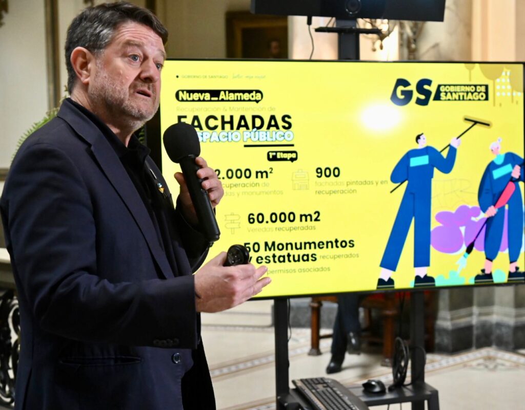 “Todos sabemos que el estado de la Alameda era desastroso, hasta hace algunos meses. Cuatro años de vandalización, de grafiti, de suciedad, sin que nadie hiciera nada. Con el proyecto Nueva Alameda, en alianza con los ministerios y los municipios, nos propusimos recuperar la Alameda para las personas. En la primera etapa ha significado 52.000 m2 de fachadas y de monumentos recuperados y, ahora vamos a sumar, otros 23.000 m2, lo que suma 75.000 m2 de fachadas limpias y monumentos limpios para la ciudad”.