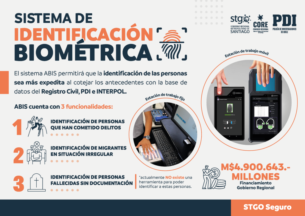 El proyecto permite la identificación de manera instantánea de quienes han cometido delitos, migrantes en situación irregular y personas fallecidas sin identificación, al comparar antecedentes en tiempo real con las bases de datos del Registro Civil, PDI e Interpol.