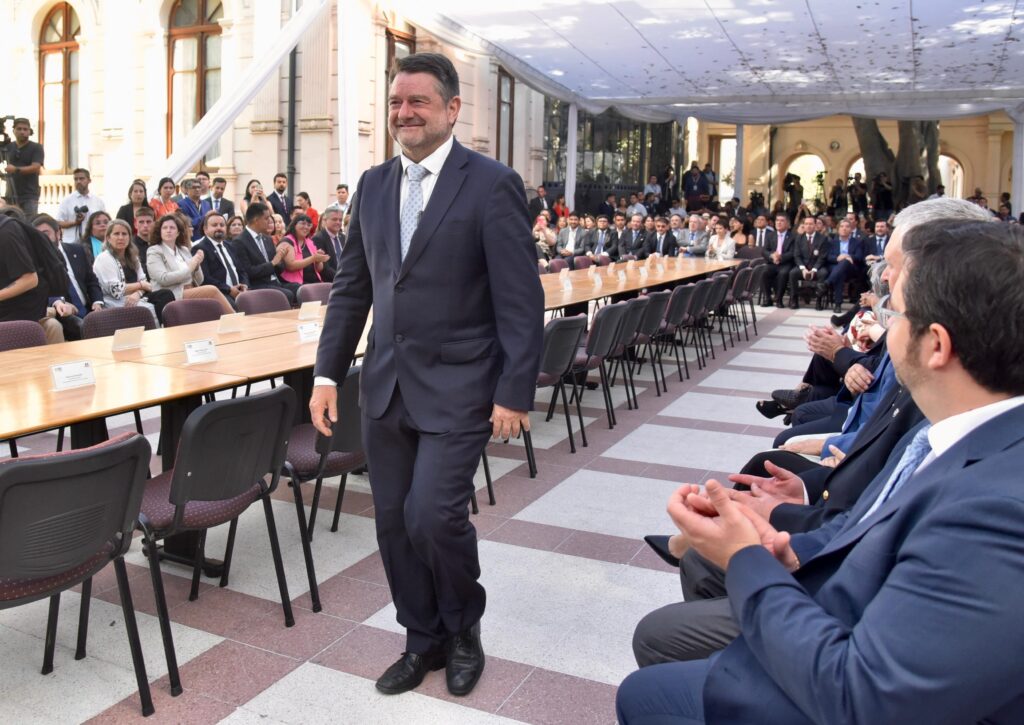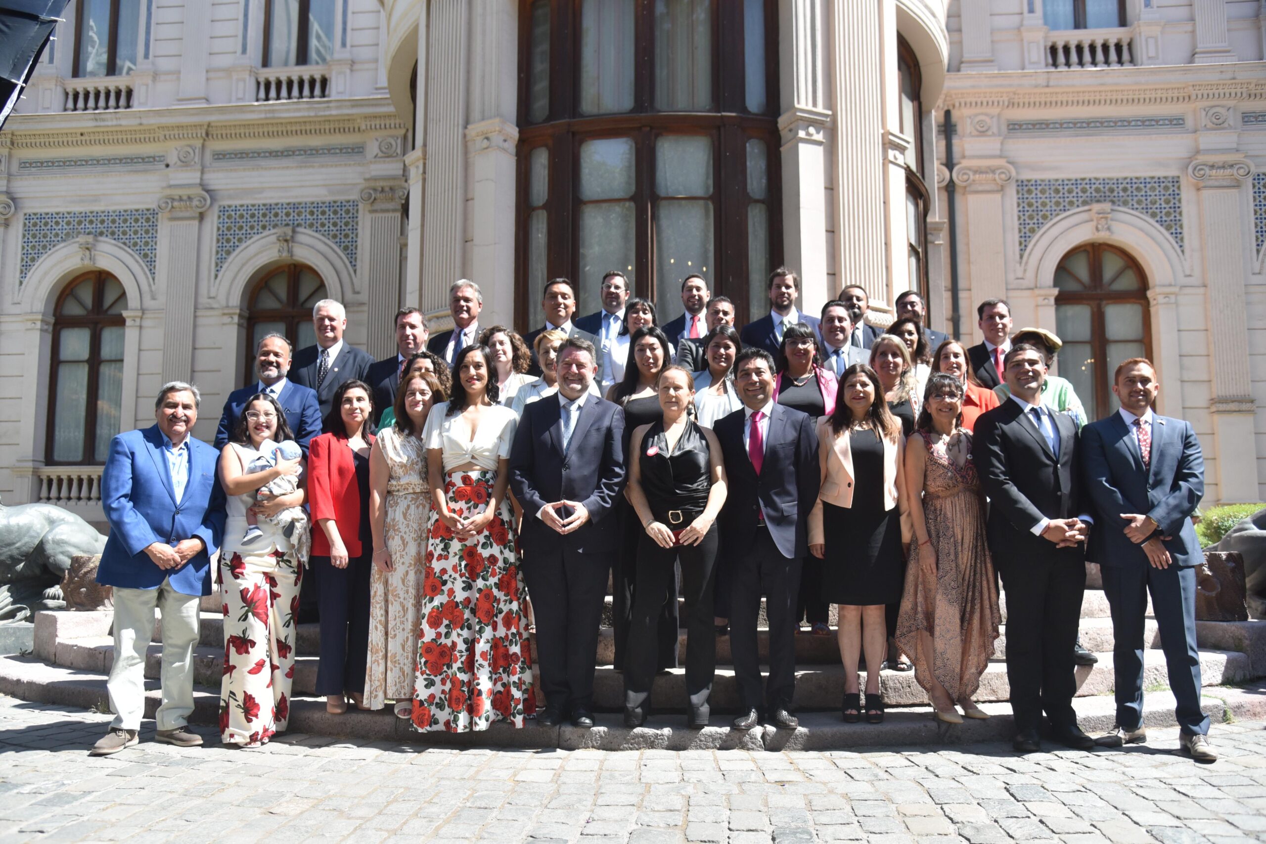 Santiago, 06 de enero de 2025.- En las inmediaciones del histórico Palacio Cousiño, el Gobernador de Santiago, Claudio Orrego, juró para su segundo período en el cargo y encabezó la ceremonia de instalación del Consejo Regional Metropolitano, donde el Tribunal Electoral lo proclama como la máxima autoridad de la Región Metropolitana y presidente del Consejo, por el periodo 2025-2029.
