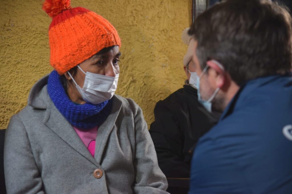 Santiago, 11 de julio de 2022. Debido a las bajas temperaturas que se registrarán en la capital tras el sistema frontal del fin de semana, el gobernador metropolitano junto a la seremi de Desarrollo Social y Familia, Patricia Hidalgo, visitaron a personas en situación de calle en el albergue Villavicencio de Santiago, y además realizaron un balance de lluvias.