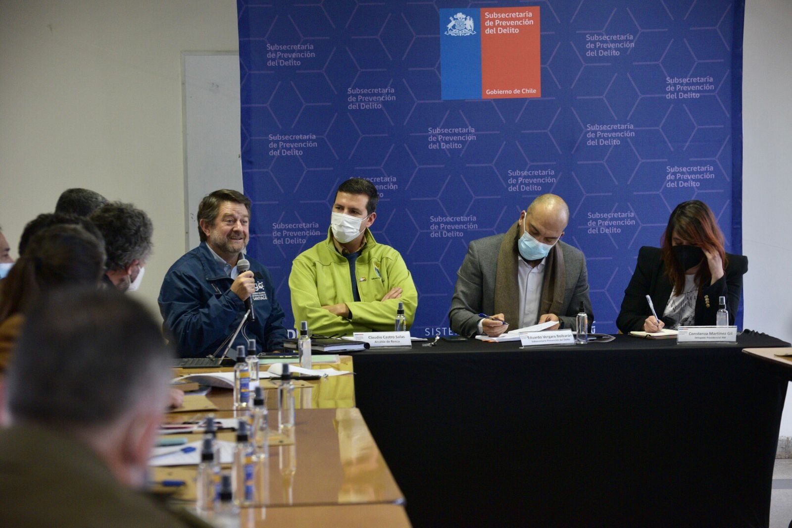 El encuentro fue encabezado por el Subsecretario de Prevención del Delito, Eduardo Vergara, y participaron los alcaldes de: Estación Central, Huechuraba, Independencia, Santiago, Quinta Normal, Renca, Recoleta, Quilicura, Lo Prado, Lampa, TilTil, Conchalí, Cerro Navia, y Colina, además de representantes de la Fiscalía, PDI, Carabineros, la Dirección Nacional de Aduanas, Servicio de Impuestos Internos, Seremi Metropolitano de Salud y la Delegada Presidencial, Constanza Martínez.