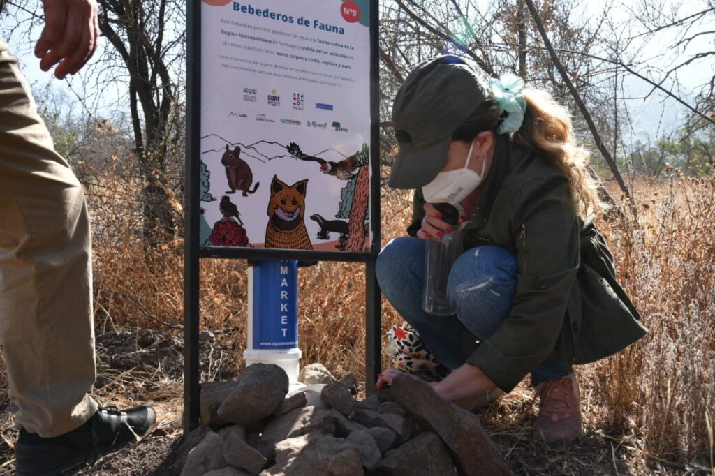 “Como Gobierno Regional estamos preocupados de cómo la sequía afecta, no solo a las personas de la Región Metropolitana, sino también a la fauna silvestre. Vinimos al Parque Mahuida a supervisar la instalación de esta red de bebederos que permite que las personas que acceden a los distintos parques del pie de monte, haciendo trekking u otro deporte, puedan aportar a esta iniciativa con su propia agua o llamando a un numero WhatsApp para poder ir rellenando y permitir que los animales que habitan aquí tomen agua y entre todos y todas apoyemos el cuidado del medioambiente”, afirmó la gobernadora (s) Gabriela Elgueta