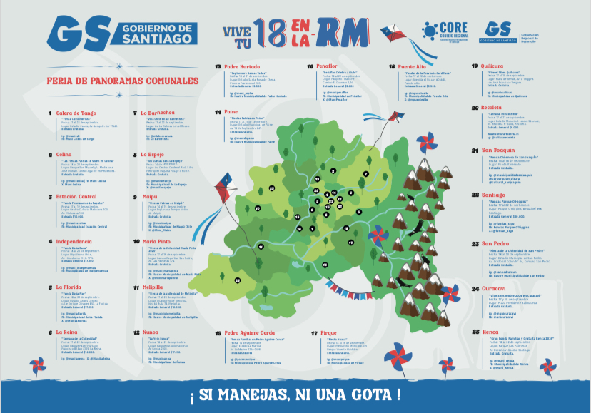 - “Vive tu 18 en la RM” incluye 25 actividades: 9 fondas, 16 fiestas costumbristas y stands de emprendedores, en diversas comunas de la región.
