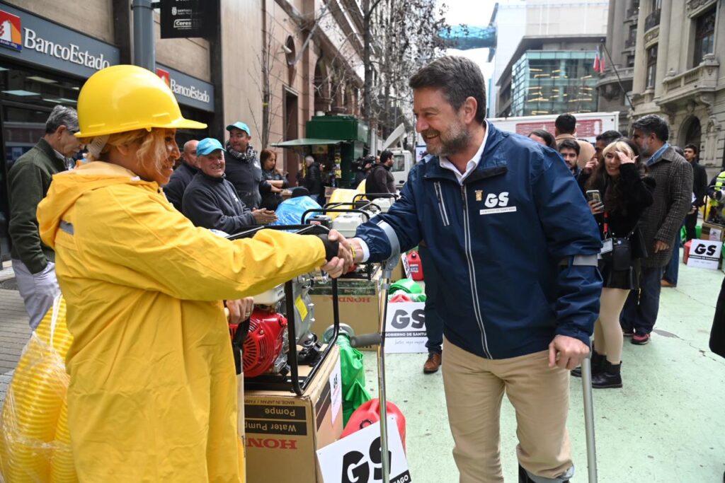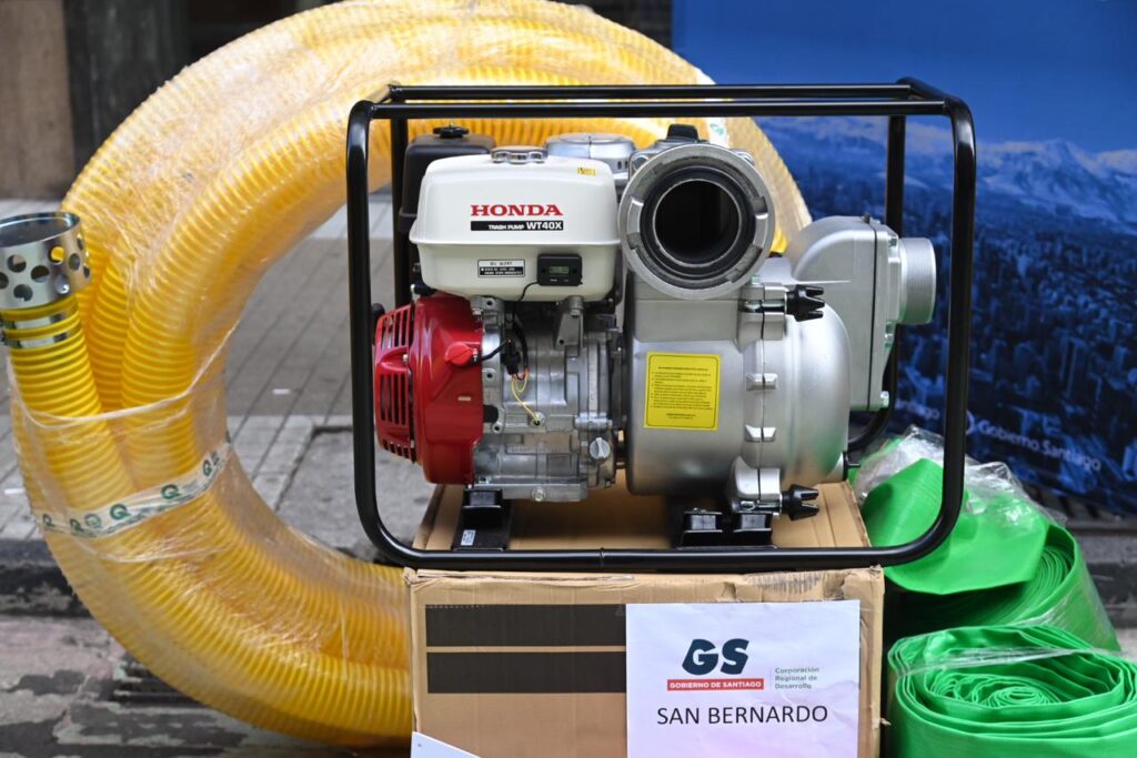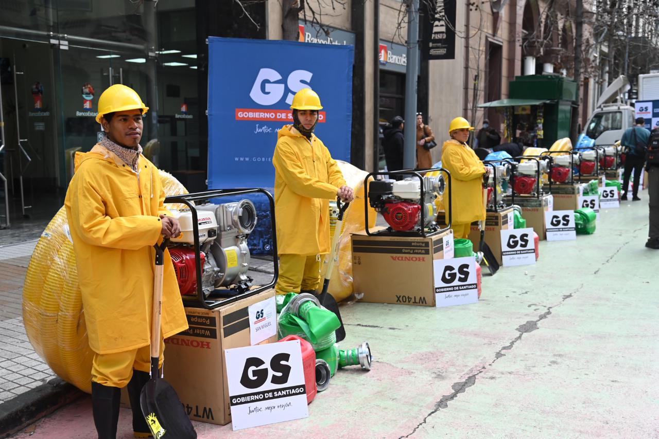 Santiago, viernes 18 de agosto de 2023.- Ante el próximo sistema frontal pronosticado para este fin de semana en la Región Metropolitana, el Gobernador de Santiago, Claudio Orrego, tomó medidas preventivas para los ciudadanos. En este contexto, hizo entrega de 25 motobombas destinadas a apoyar los trabajos municipales en caso de inundaciones.