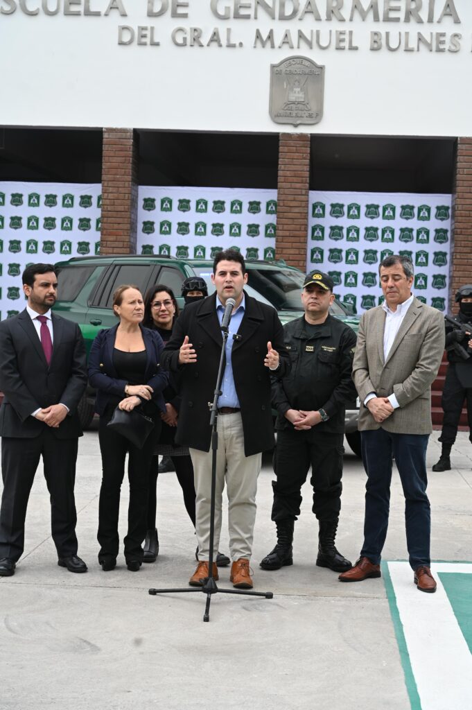 “Actualmente, estos tres vehículos se suman a una flota de vehículos blindados que tiene Gendarmería. Hace un par de semanas presentamos tres vehículos más que activó Gendarmería, precisamente en el plan nacional contra el crimen organizado con recursos del gobierno de Chile, con el trabajo estratégico que pudimos desarrollar. Y aquí quiero agradecer especialmente al gobernador Claudio Orrego, con el que pudimos realizar este trabajo estratégico para dotar a Gendarmería de Chile de tres vehículos blindados que nos permiten hacer una cápsula de seguridad para los traslados de alto riesgo”, señaló el Subsecretario de Justicia, Jaime Gajardo.