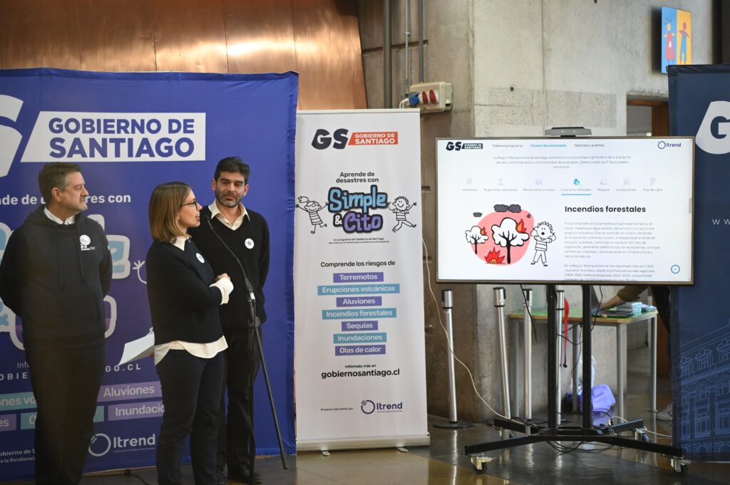 En esa línea, el gobernador de Santiago, Claudio Orrego, destacó que: “Para tener una ciudad más segura tenemos que prepararnos. No solamente invertir en infraestructura, también preparar a la población y educar a nuestros niños, a nuestros jóvenes y a toda la comunidad. Este proyecto del Gobierno de Santiago, en alianza con Itrend, busca crear la conciencia de que somos un país de desastres. Y que podemos prepararnos y construir una ciudad más resiliente, renovando nuestro compromiso con que Santiago sea una región y una ciudad más segura para todos y para todas. Donde podamos y aprendamos a vivir en armonía y también con alerta en relación con la naturaleza”.