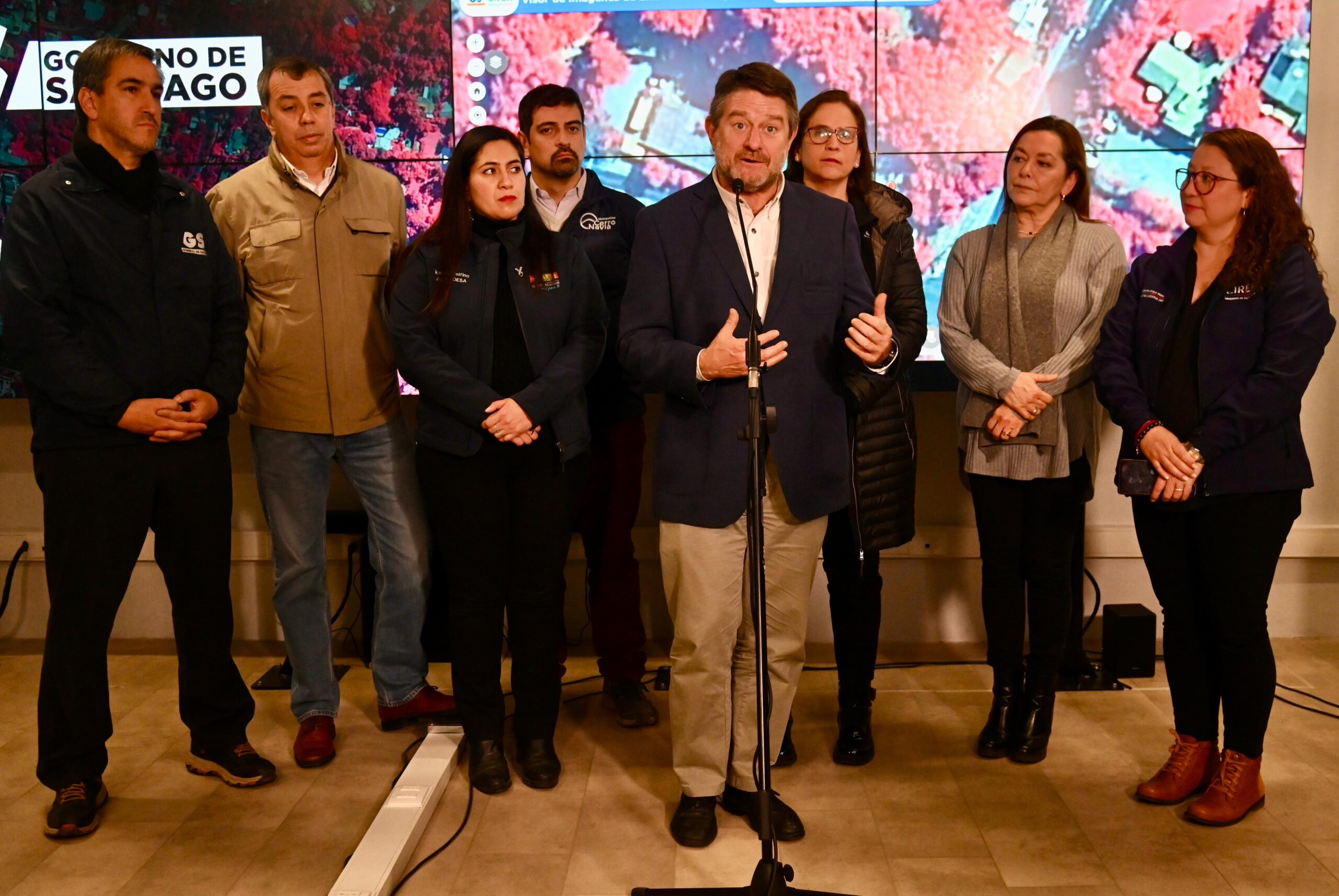Santiago, 09 de agosto de 2024.- El Gobernador de Santiago, Claudio Orrego, junto a la Presidenta de la Asociación de Municipalidades, Carolina Leitao, y la Directora del Centro de Información de Recursos Naturales (CIREN), Katherine Araya, puso a disposición de los 52 municipios de la Región Metropolitana, un innovador mapa con imágenes de alta resolución. Este sistema avanzado incorpora una herramienta especializada para diagnosticar el estado de salud de los árboles, mediante ondas espectrales que miden la presencia de clorofila y vigorosidad de las áreas verdes. De esta manera, se convierte en un recurso crucial para la detección de posibles riesgos de caídas durante frentes de mal tiempo, lo que ayuda a la gestión preventiva municipal.