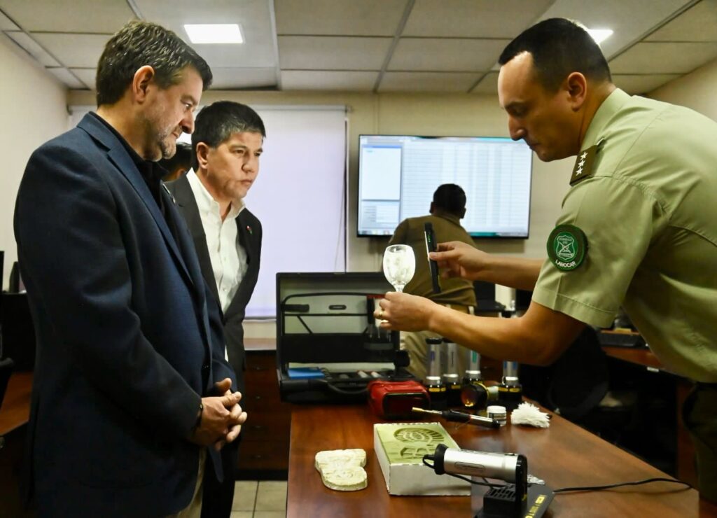 El subsecretario Manuel Monsalve y el gobernador Claudio Orrego visitaron las dependencias del LABOCAR para conocer los recursos con que cuenta la institución y los requerimientos tecnológicos para la investigación y persecución del crimen organizado.