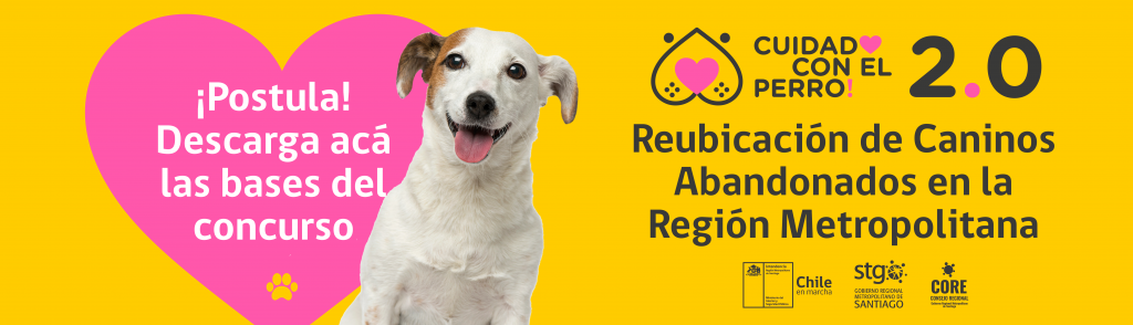 El Gobierno Regional Metropolitano de Santiago, en el marco de la segunda etapa del Programa de Control, Prevención y Reubicación de Caninos Callejeros en la Región Metropolitana, más conocido como “Cuidado con el Perro 2.0”, invita a las organizaciones sin fin de lucro promotoras del bienestar animal y que tengan carácter de rescatistas, a postular vía concurso público al proyecto de “Reubicación de Caninos Abandonados en la Región Metropolitana”.