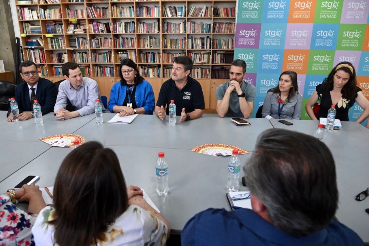 Santiago, 22 de noviembre de 2022.- Frente al incremento de exclusión escolar en la Región Metropolitana, el gobernador metropolitano, Claudio Orrego, junto a la Seremi de educación RM, Flavia Fiabane, al alcalde de Estación Central, Felipe Muñoz, al gerente de desarrollo y estudios Fundación San Carlos de Maipo, Rafael Rodríguez, y la subdirectora de Fundación Presente, Carmen Gloria Jackson, presentaron un programa que busca contribuir en la disminución del ausentismo en estudiantes de octavo básico y primero medio.