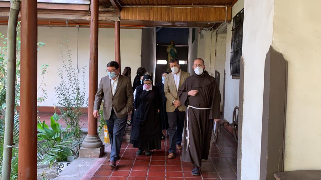 Santiago, 31 de marzo de 2021.- El Intendente Metropolitano, Felipe Guevara; junto a la Directora de la Casa de Acogida Santa Clara, Hermana Nora Valencia; la Directora Ejecutiva de la Fundación Santa Clara, Carolina Jara; y el presidente del Consejo Regional, Felipe Berríos, visitaron las actuales dependencias del hogar con el fin de compartir y conocer la realidad de los niños y niñas del recinto.