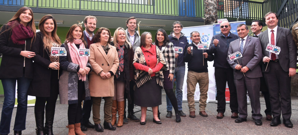 Santiago, 10 de Julio de 2019.- En el frontis de la Estación de Metro Fernando Castillo se reunió la Intendenta Metropolitana, Karla Rubilar, junto al alcalde de La Reina, José Manuel Palacios y los alumnos y vecinos del sector, quienes realizaron un breve recorrido en uno de los buses, viviendo la experiencia de circular en una máquina amigable con el medio ambiente y cero contaminante.