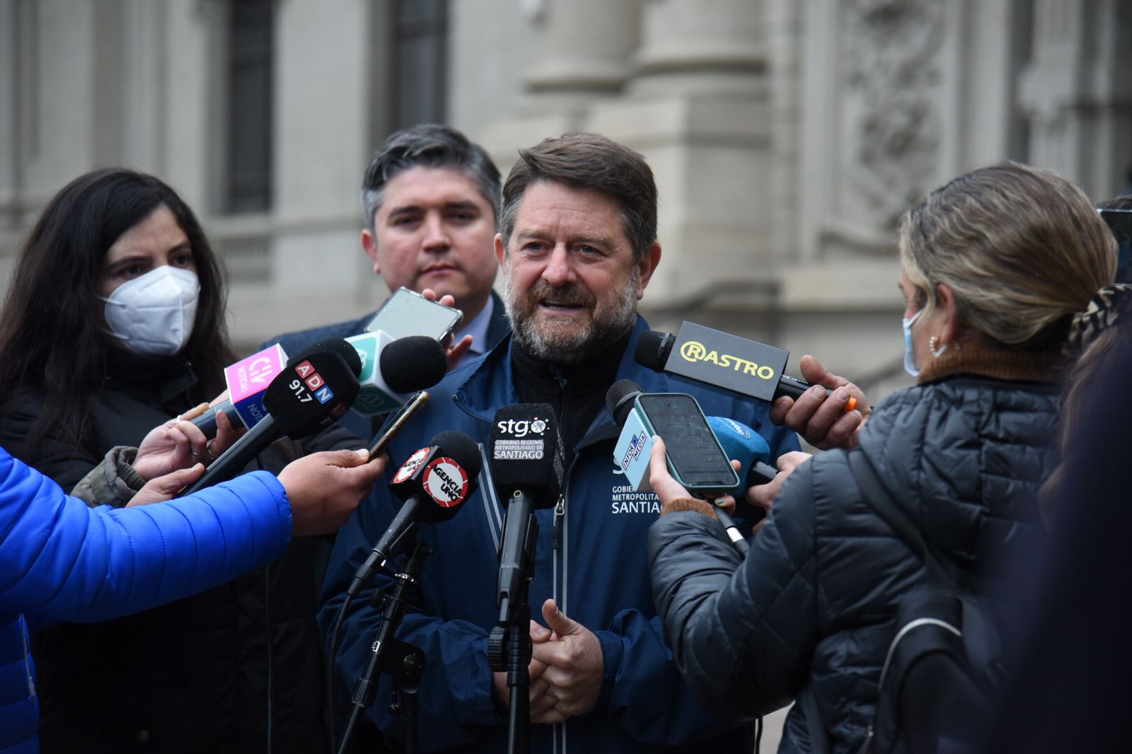 Santiago, 16 de agosto de 2022. Hasta el frontis del Museo Nacional de Bellas Artes llegó el gobernador metropolitano, Claudio Orrego, quien entregó detalles de la querella criminal que presentó el Gobierno Regional Metropolitano contra quienes resulten responsables de los graffitis pintados en la cúpula del Museo Nacional de Bellas Artes.
