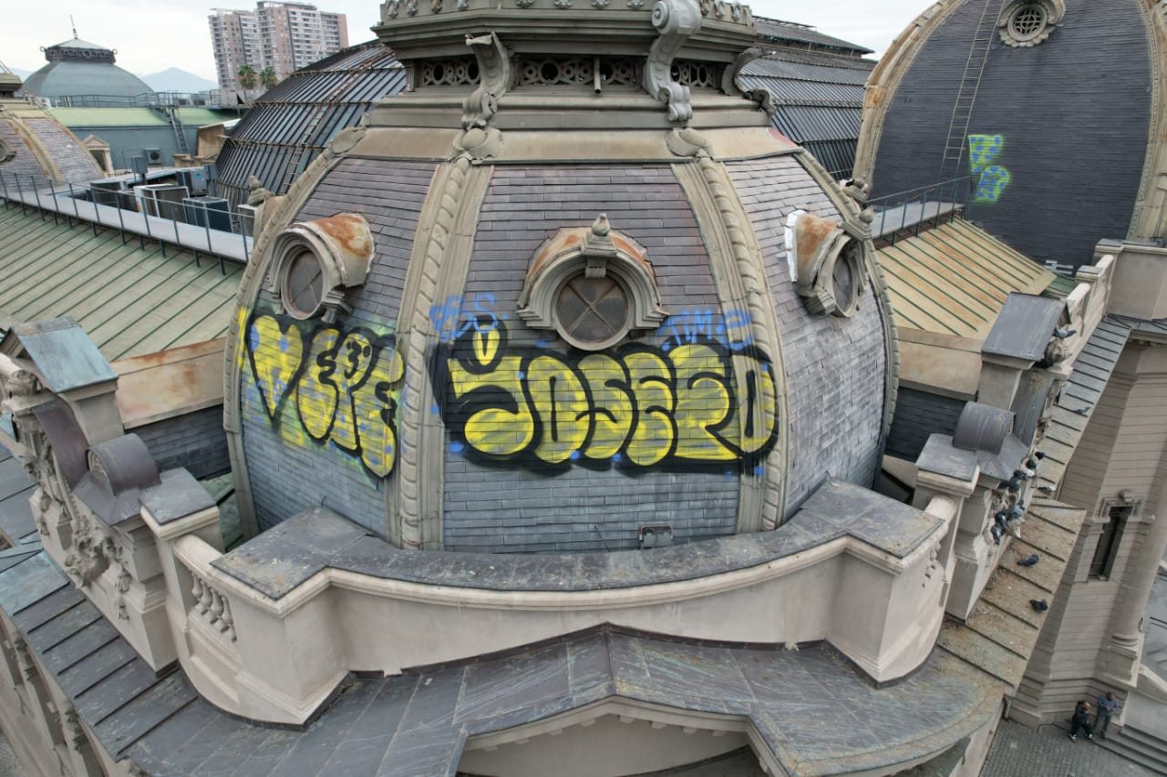 El hecho ocurrió el pasado jueves 11 de agosto, alrededor de las 17.30 horas, cuando dos personas subieron hasta una de las cúpulas del Museo Nacional de Bellas Artes (MNBA) y rayaron el tejado de la techumbre del costado sur – oriente.