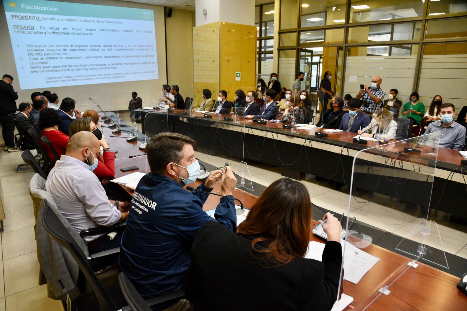 La “Mesa Regional de Comercio Ambulante y Espacio Público” que lidera el gobernador Claudio Orrego, la conforman alcaldes y alcaldesas de la ciudad, representantes de Carabineros y la PDI, Delegación Presidencial, Fiscalía y Ministerio Público, Servicio de Impuestos Internos, Servicio de Aduanas, Seremi de Salud, Instituto de Salud Pública, la Cámara de Comercio de Chile, y fundaciones públicas y privadas, entre otras instituciones.