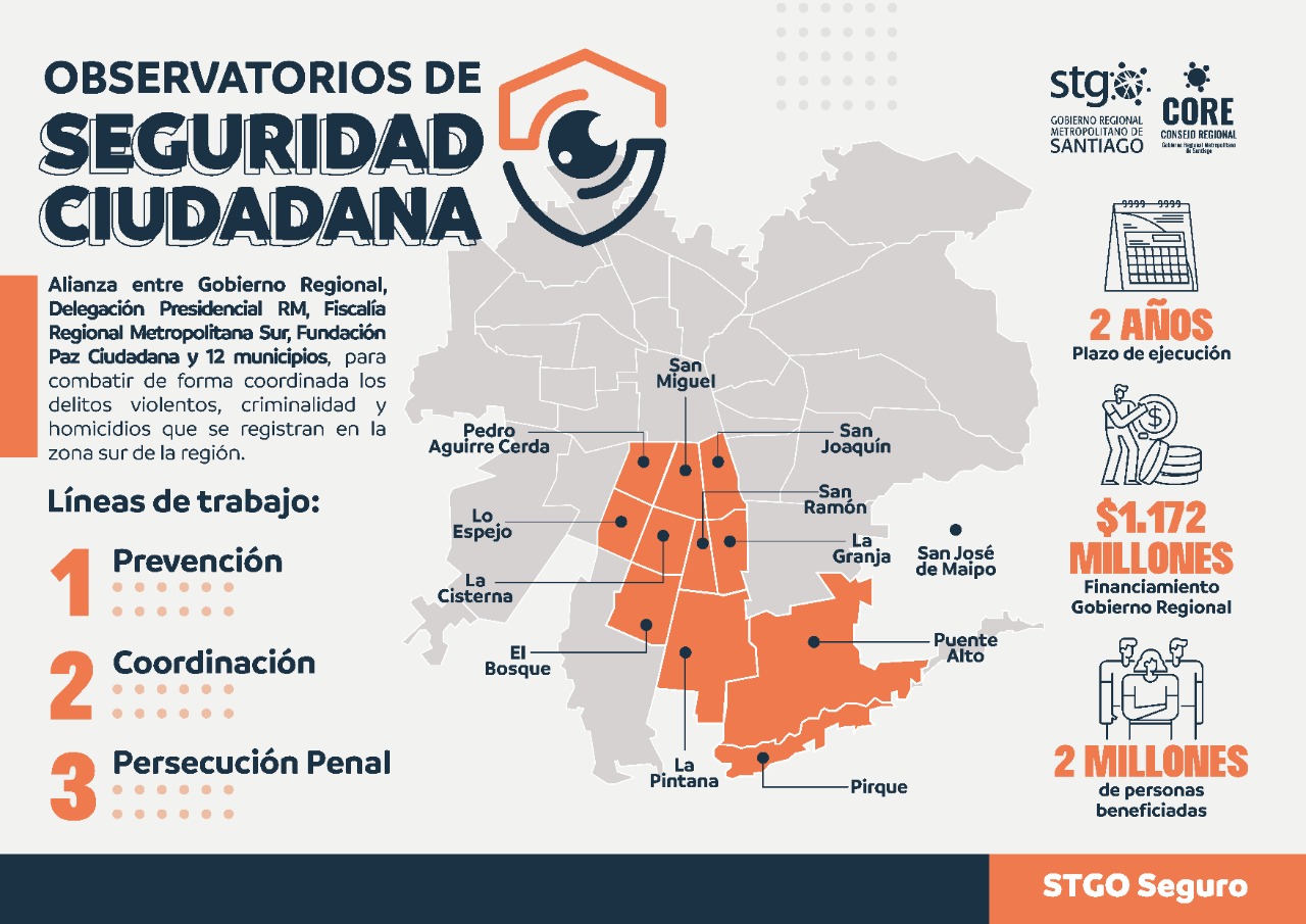 La iniciativa busca generar políticas preventivas más eficaces y una persecución penal más efectiva en las comunas de El Bosque, La Cisterna, La Granja, La Pintana, Lo Espejo, Pedro Aguirre Cerda, Puente Alto, San Joaquín, San Miguel, San Ramón, Pirque y San José de Maipo, a través de la coordinación y articulación interinstitucional en el territorio, beneficiando a casi 2 millones de personas.