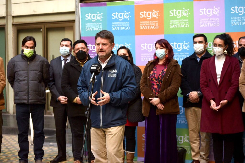Santiago, 26 de julio de 2022. Frente al aumento de delitos violentos, criminalidad y homicidios en la Región Metropolitana, el gobernador Claudio Orrego, junto al fiscal metropolitano Sur, Héctor Barros, el director ejecutivo de la Fundación Paz Ciudadana, Daniel Johnson, y alcaldes y alcaldesas de 12 municipios, constituyeron el Programa de Observatorios de Seguridad Ciudadana.