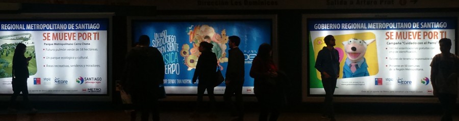 Dos millones y medio de personas circulan a diario en las estaciones del Metro de Santiago, lugar donde el Gobierno Regional desarrolla su segunda campaña de promoción de proyectos y programas a través de paletas publicitarias en los andenes y la proyección de videos en los monitores de toda la red del tren metropolitano.