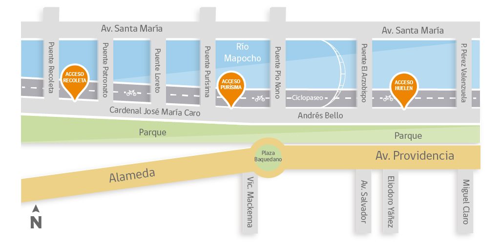El Gobierno Regional Metropolitano aprobó hace algunas semanas el proyecto ciclopaseo Mapocho Pedaleable definitivo el que considera 4 accesos tipo escalera, dado que estos tiene una menor superficie por lo que provocan un menor impacto en los parques y 2 accesos tipo rampa necesarios para poder dar accesibilidad universal al proyecto que tiene una extensión de 5.15 kilómetros. El monto del financiamiento por FNDR es de $ 6.545.000.000.