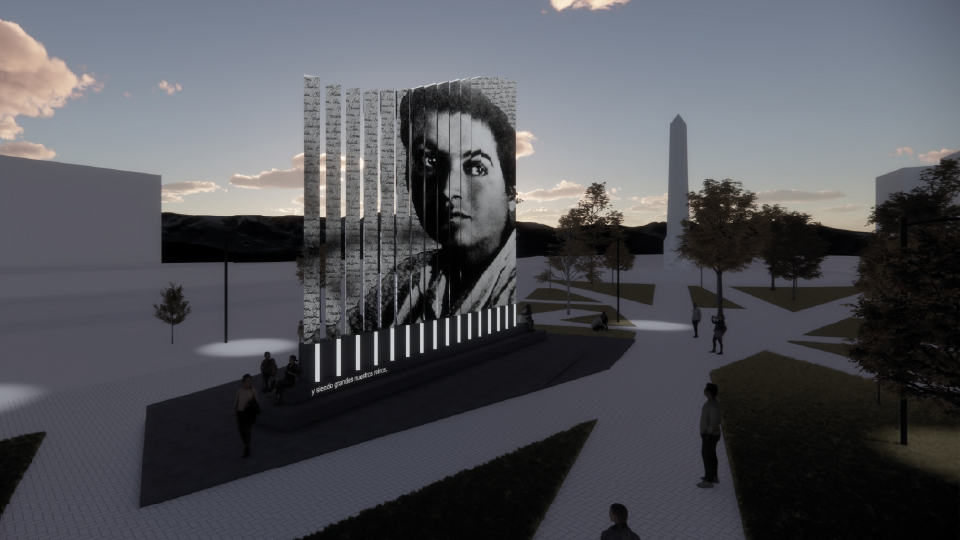 - Compuesta por dieciséis prismas verticales de acero con imágenes digitales restauradas de Gabriela Mistral, la propuesta considera una instancia participativa para elegir cientos de nombres de mujeres chilenas que estarán impresas en placas de aluminio.